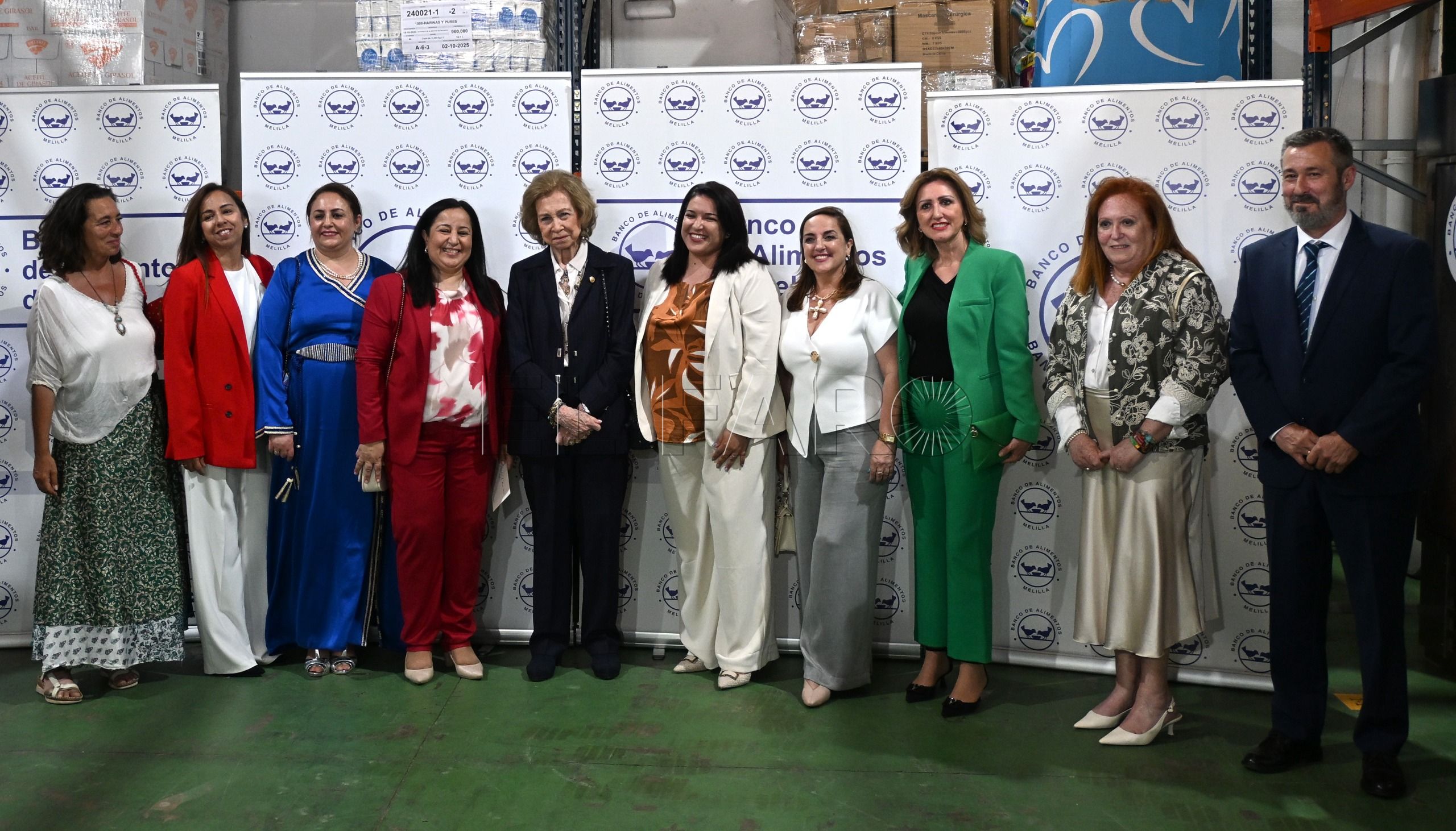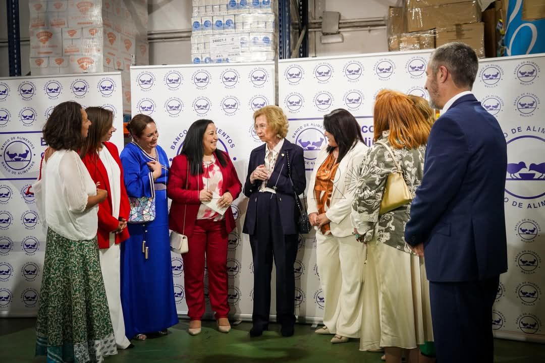 La presidenta de Activas-Charter 100, Nayat Mohamed, y otras socias fueron algunas de las melillenses que tuvieron la suerte de poder departir durante unos minutos con la Reina Sofía -“una persona muy cercana y muy agradecida”- durante su visita al Banco de Alimentos de la ciudad autónoma el pasado jueves.