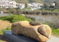 La pieza de mármol está ya situada en un entorno paisajístico cerca del cementerio del pueblo junto a la zona de parkings de caravanas.