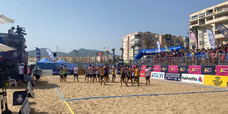 De muy importante se puede catalogar la celebración en la jornada de ayer de la primera de las jornadas de competición de la Supercopa de España de balonmano playa que se está celebrando en la playa de San Lorenzo. Durante toda la jornada sabatina se llevaron a cabo los diferentes encuentros en cada una de las categorías que entran en liza tanto en masculino como femenino, con una amplia representación de equipos de nuestra ciudad que optan a los diferentes títulos que se están jugando. De tierras peninsulares han llegado un buen número de equipos que tratarán de poner las cosas muy difíciles a cada uno de los representantes de la Federación Melillense de Balonmano. La afición de nuestra ciudad junto a los jugadores de los diferentes equipos participantes inundaron las gradas del campo de juego donde se celebró este evento de primer nivel organizado por la Real Federación Española de Balonmano en nuestra ciudad.