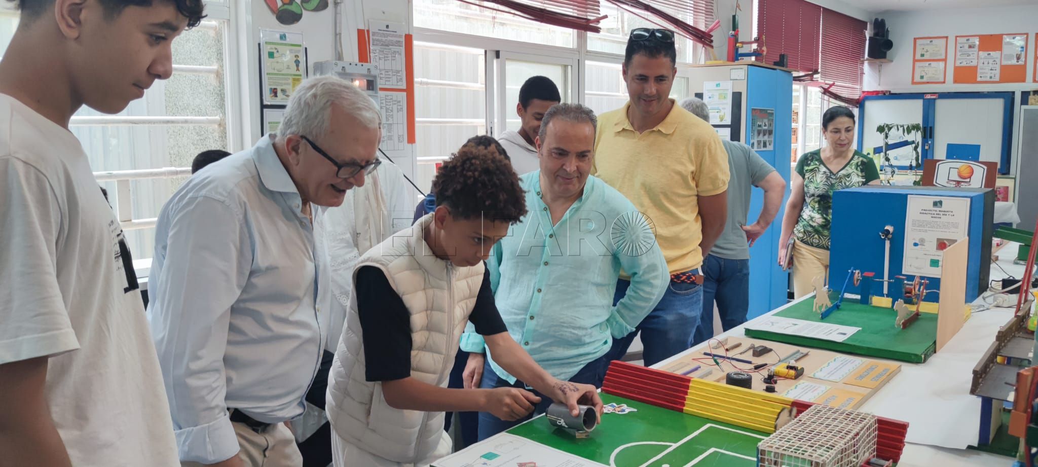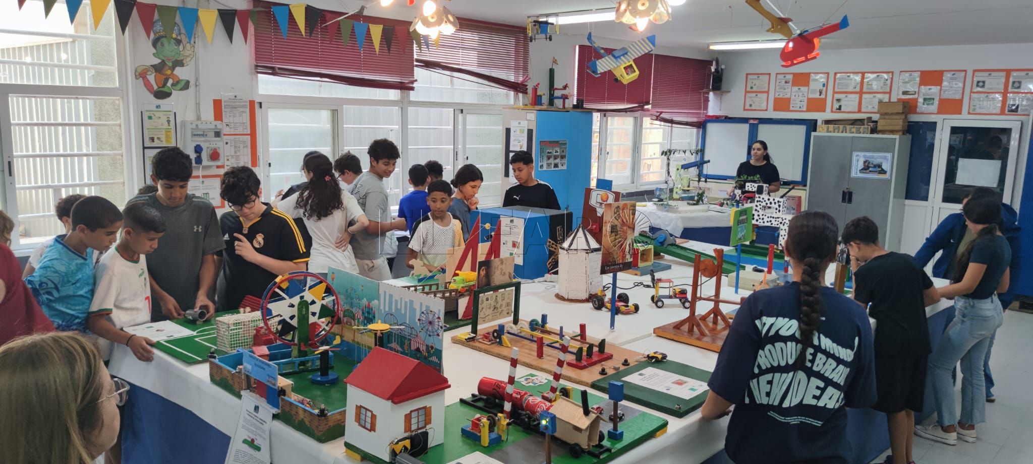 Durante los últimos quince días se ha desarrollado en el Instituto Rusadir la tradicional muestra de los trabajos de tecnología que los alumnos del Aula de Atención Temporal han diseñado y construido durante todo el curso. La inauguración de esta original exposición tuvo lugar el pasado martes 3 de junio y tuvo como especiales invitados a varios responsables del Servicio de Inspección Educativa y asesores de la Unidad de Programas Educativos, en nombre de la directora provincial del Ministerio de Educación, Formación Profesional y Deportes (MEFPyD), Elena Fernández Treviño, que no quisieron perderse, como cada año, la apertura de esta simpática exhibición de dispositivos mecánicos, hidráulicos y eléctricos que en esta ocasión tuvo como motivo recurrente construyendo un parque de atracciones a partir de materiales cotidianos reciclados. Si bien el reciclaje ha sido denominador común en todas las pasadas ediciones de estas exposiciones de fin de curso en el taller de Tecnología, durante este curso que acaba las cuestiones de reciclar, reutilizar y reducir son más significativas si cabe por haber sido uno de los temas clave alrededor del cual se han planteado en el centro todas las actividades complementarias para la mejora de la convivencia que se iniciaron con la celebración de la jornada de convivencia 'Por un futuro sostenible' el pasado mes de febrero.