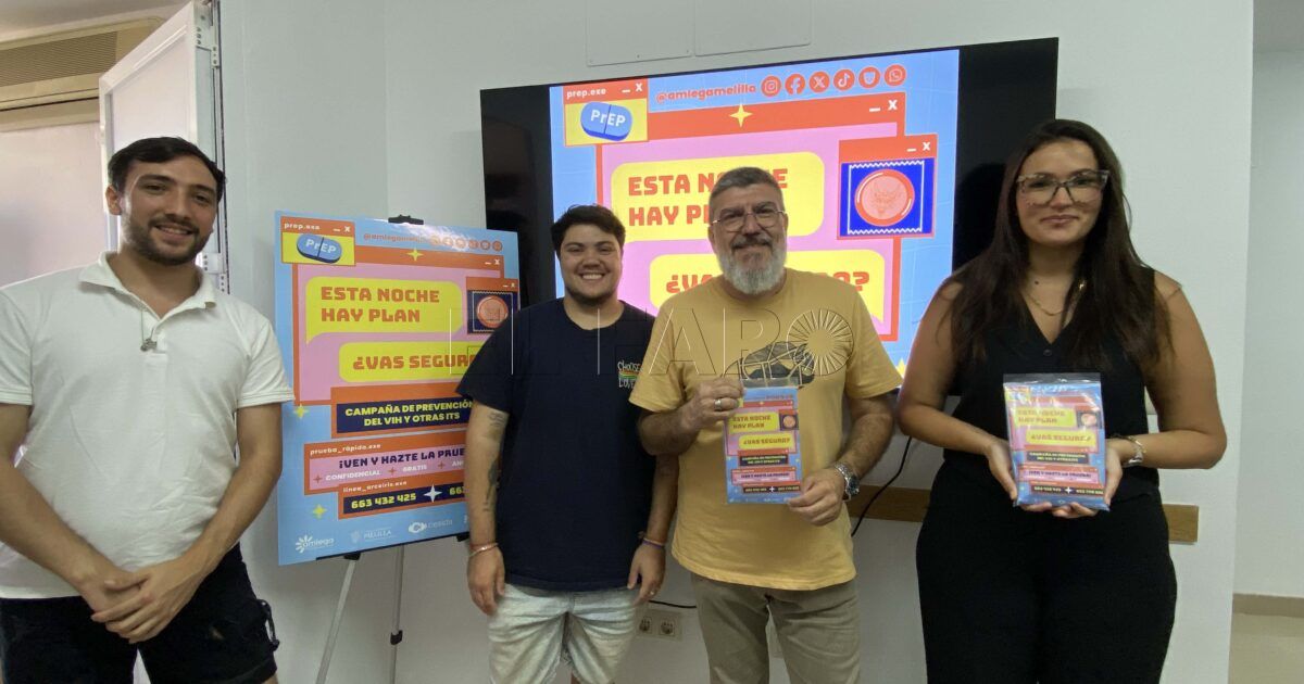 La Asociación Melillense de Lesbianas, Gais, Transexuales y Bisexuales (Amlega) ha puesto en marcha una nueva edición de su campaña estival de prevención del VIH y otras infecciones de transmisión sexual (ITS). Esta acción, ya consolidada en el calendario anual de la entidad, se desarrolla bajo el lema “Esta noche hay plan, ¿vas seguro?” y forma parte del programa Línea Arcoíris, en colaboración con la Consejería de Políticas Sociales y Salud Pública de la Ciudad Autónoma de Melilla.