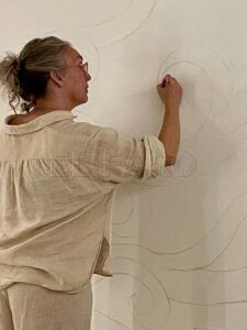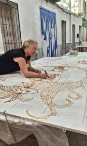 Durante mucho tiempo, el color le generaba inseguridad. Sus primeras obras estaban dominadas por el azul y el negro, tonos que la hacían sentirse segura. Poco a poco, sin embargo, ha ido incorporando nuevos matices a su paleta, en un proceso que refleja también su evolución personal. “El color me apasiona, pero me daba miedo. Ahora intento meter más color en mi vida. Estoy haciendo un calendario para el año que viene lleno de colores”, confiesa.