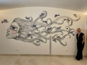 El título de la obra, La vie est B, es un juego de palabras que resume esta visión: la vida como bella, pero también bestial. Habla de una existencia llena de matices, donde lo bello no excluye el dolor y donde lo emocional encuentra su cauce en la forma, el color y el volumen. No hay dicotomías cerradas entre lo bueno y lo malo, sino una representación viva de la complejidad del ser. Cada trazo, cada pincelada, refleja un momento emocional concreto. La artista no busca la representación fiel ni la proporción académica, sino lo que el cuerpo transmite desde el interior. No hay simetría ni cálculo: hay expresión. “Trabajo con la brocha y el movimiento, sin planificar demasiado. No soy ordenada en el proceso. Lo que ves es lo que surge”, describe la artista.