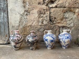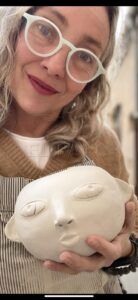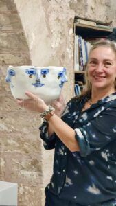 Nacida en Almería, la artista se formó en diseño gráfico y posteriormente en Bellas Artes. Su trayectoria ha sido diversa: ha trabajado como ilustradora, diseñadora web e incluso en la tematización de espacios como PortAventura. Sin embargo, fue la maternidad la que marcó un giro en su camino creativo. Tras mudarse a Mallorca con una hija pequeña y embarazada de su segundo hijo, se entregó por completo al arte y encontró en el barro un lenguaje, un medio de expresión que le permitió reconectar con su pulsión artística desde un espacio más íntimo y personal. Ana Uceda confiesa sentirse abrumada ante la etiqueta de “artista”; prefiere definirse como una persona que crea, que moldea, que dibuja, que se busca y se representa a través de múltiples soportes como la cerámica, la ilustración, la pintura o el diseño gráfico.