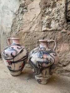La cerámica, lejos de ser una técnica más, se ha convertido para ella en un vehículo de autoconocimiento. En su proceso creativo no hay torno ni moldes repetidos: algunas de sus piezas están trabajadas a mano, desde cero, como quien escribe una página nueva en un diario personal. El resultado son obras que no persiguen la perfección académica ni el virtuosismo técnico, sino la expresión sincera a partir de la necesidad de expresa y de preguntas que afloran. Uceda se aleja del realismo y se mueve con libertad entre lo expresionista y lo visceral, a través de un trazo directo cargado de la simbología del subconsciente y del descubrimiento interior. “No busco acompañar un texto ni ilustrar algo ajeno. Ilustro lo que siento, lo que soy. Ilustro para entenderme a mí”, explica.