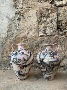 Las vasijas, como soporte, poseen un evidente valor simbólico: son contenedores de vida, como la propia mujer. En ellas se mezclan emociones, cicatrices, deseo de belleza y necesidad de expresión. Las piezas que Uceda presenta en Miradas de Mujer muestran figuras femeninas completas, representadas en posturas intensas, expresivas, con miradas que hablan de dolor, fortaleza, búsqueda y también esperanza. Cada figura no está concebida para agradar, sino para decir. “La figura de la mujer siempre me ha interesado, quizá también como una forma de entenderme a mí misma y entender al resto del mundo, de ver cómo me ven. Y se mezcla todo: mucho sentimiento, mucha búsqueda y mucha pregunta”, reflexiona Uceda.
