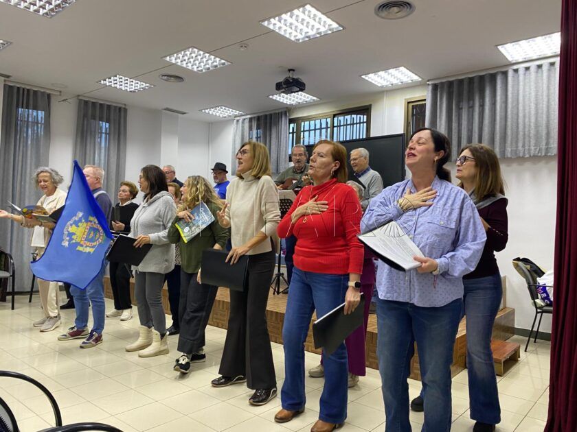 El coro de las Aulas Culturales de Mayores pone la música en este encuentro. ¿La temática? El turismo, o más bien, los turistas. La chirigota compuesta por dieciocho alumnos recibe el nombre de ‘Los turistas despistados’. Es una “chirigota de aulas”, señala Meritxell Birbe, directora del coro. De los villancicos a las chirigotas, llevan semanas ensayando las letras y la coordinación del grupo en su puesta en escena. “La letra y la música la ha escrito Antonio Padilla, que es uno de nuestros alumnos. Ahora mismo tenemos como instrumentación la guitarra y un poco de percusión”.