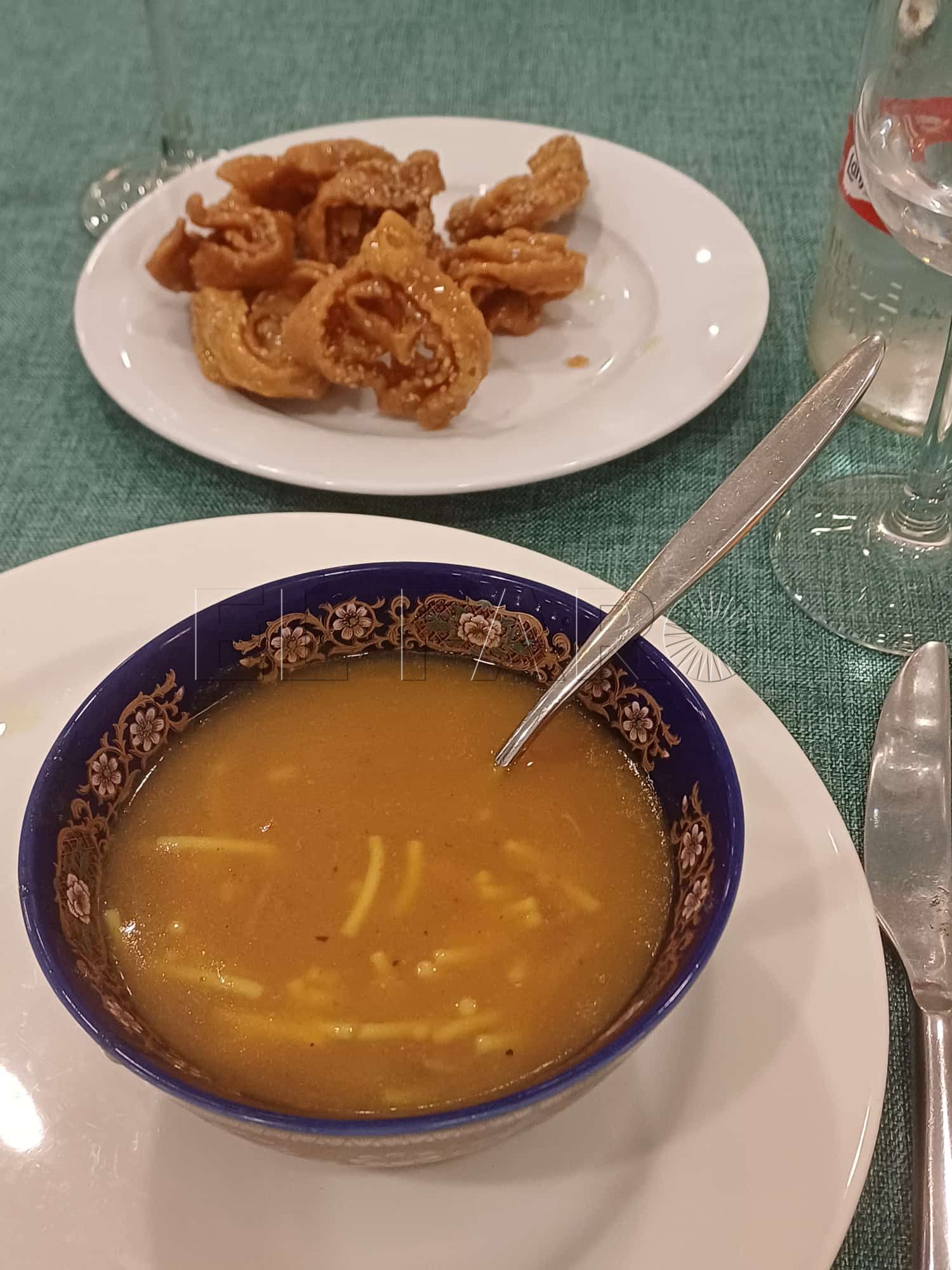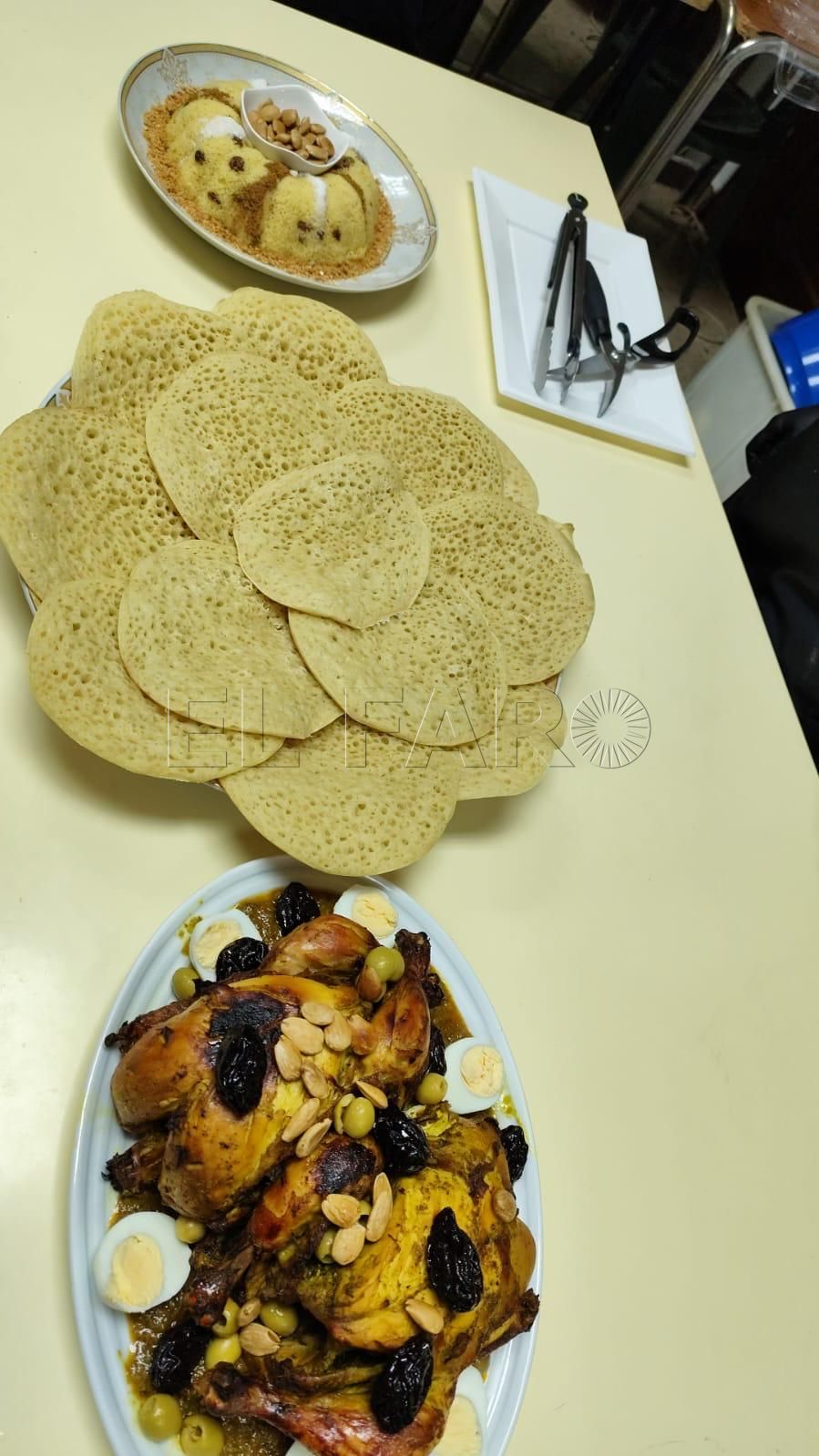 Los presentes disfrutaron de un delicioso a la par que copioso menú. Comenzando por los platos imprescindibles de la ruptura del ayuno: Los dátiles, la harera y la chebakía.