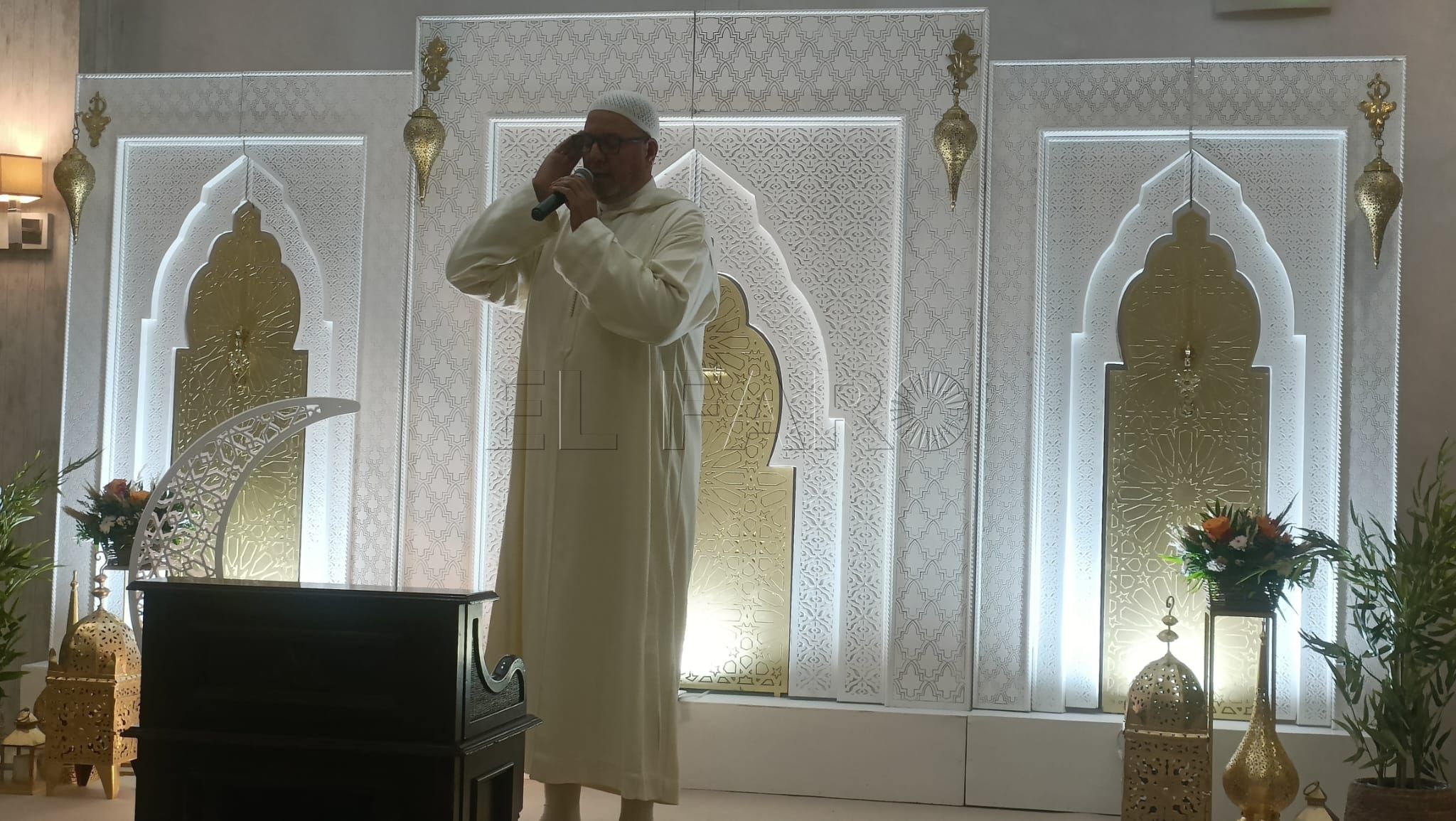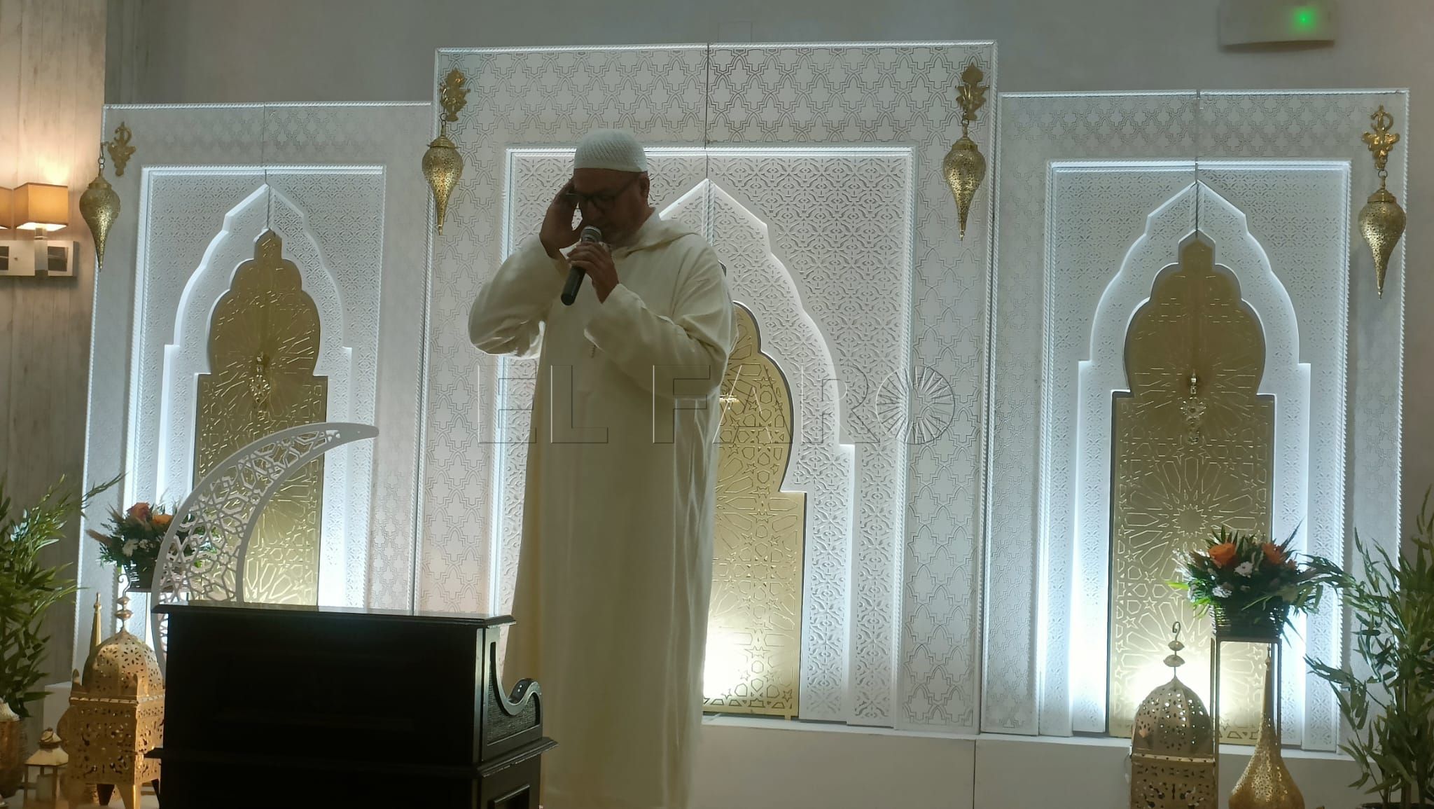 Con la puesta de sol, el muecín de la Mezquita del barrio del Real, Mohsin Benchagra, realizó la llamada al cuarto rezo del día, el maghrib. Cabe destacar que fuera del salón había un espacio para la oración para que los asistentes de fe islámica que lo desearan, pudieran rezar antes de romper su ayuno.