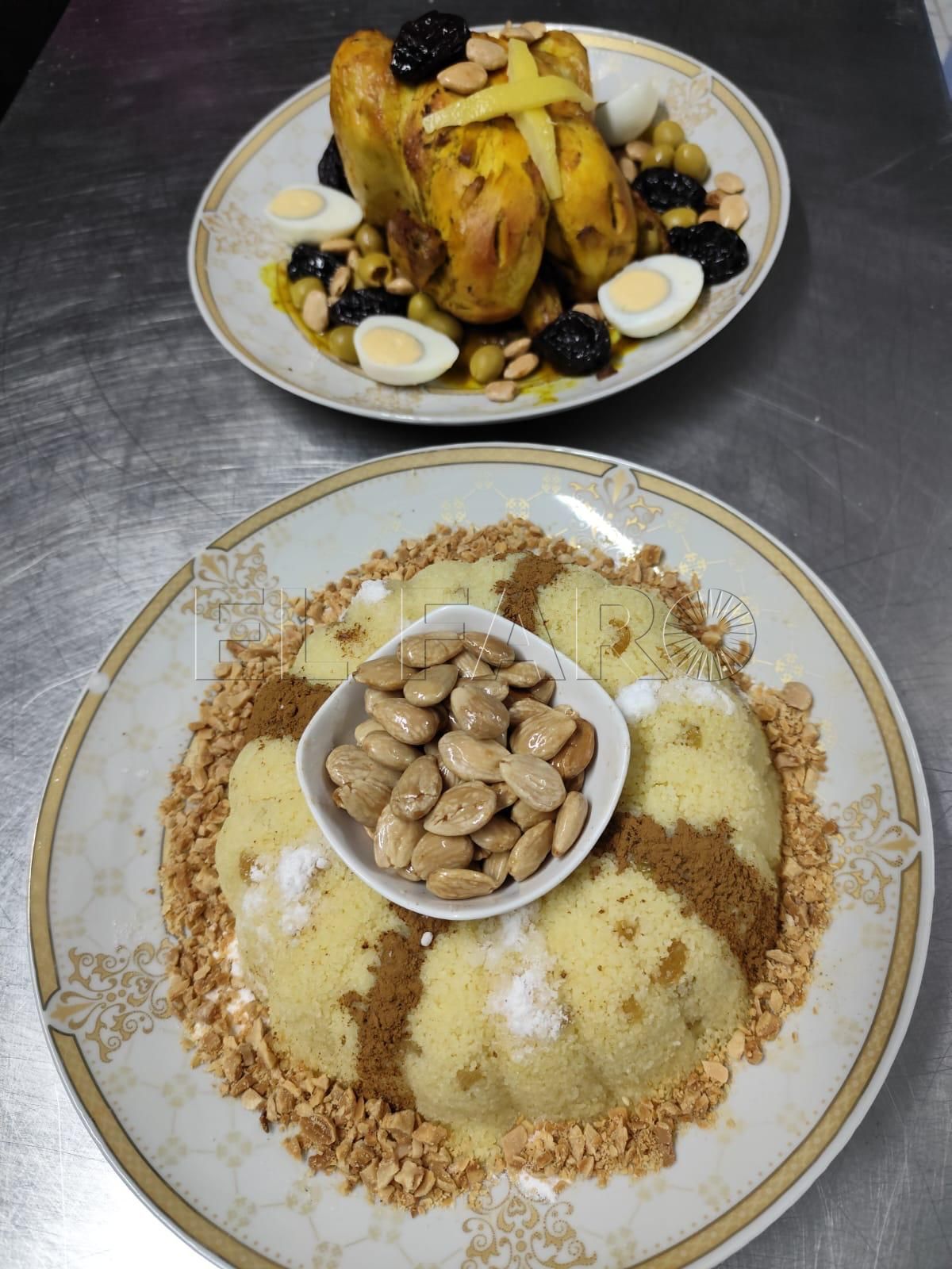 El plato fuerte llegó a las mesas con un suculento a la par que contundente cus-cus. Finalmente, llegó el momento del postre, con cus-cus dulce y pastas variadas, todo ellos regado con un delicioso té.
