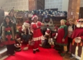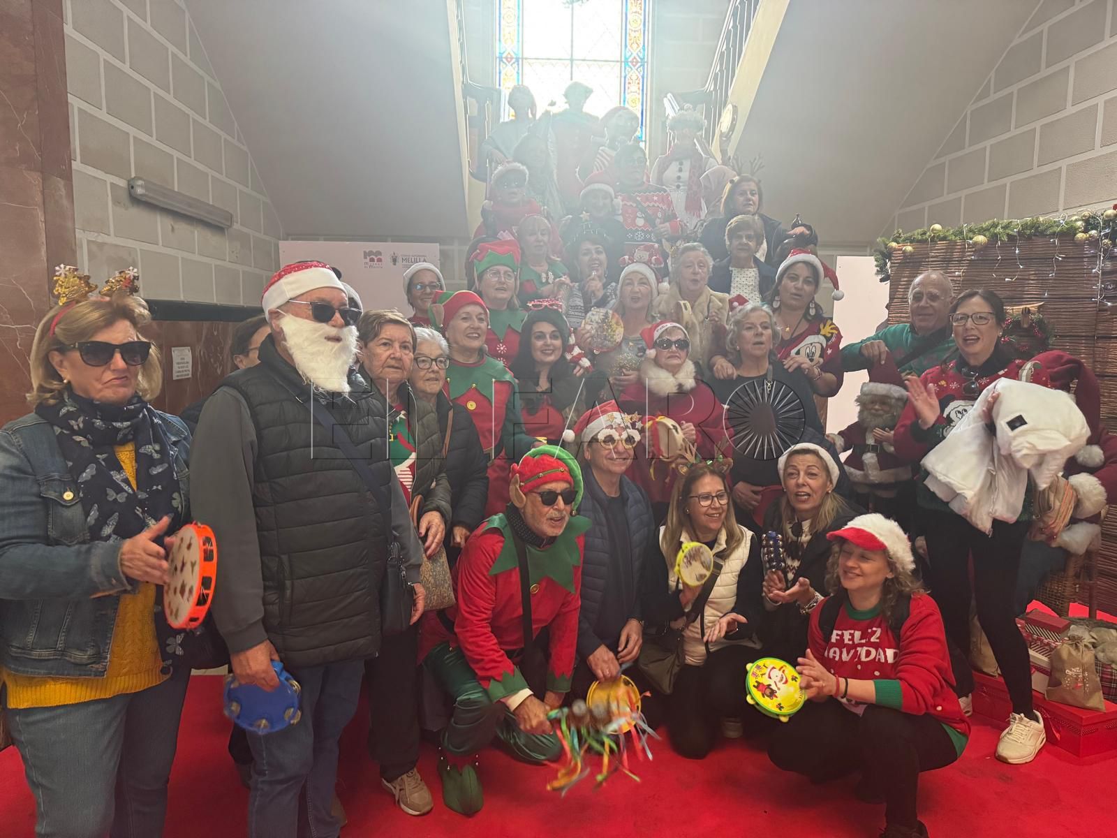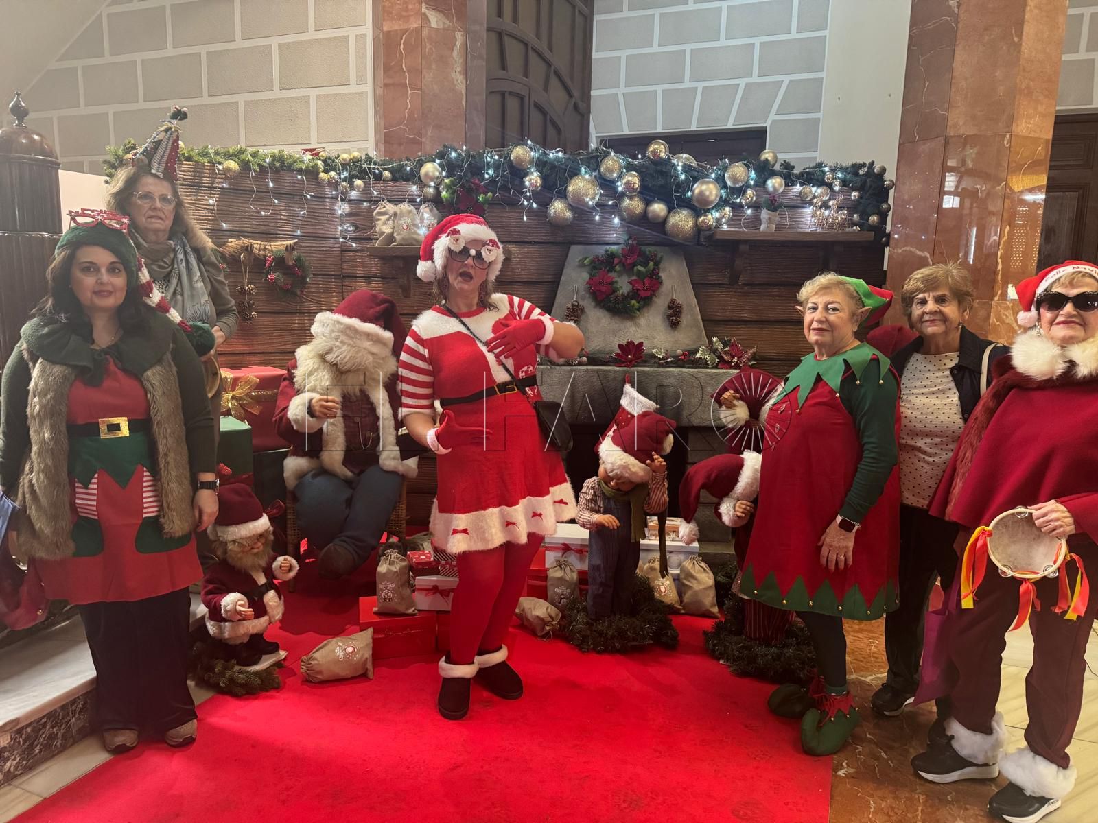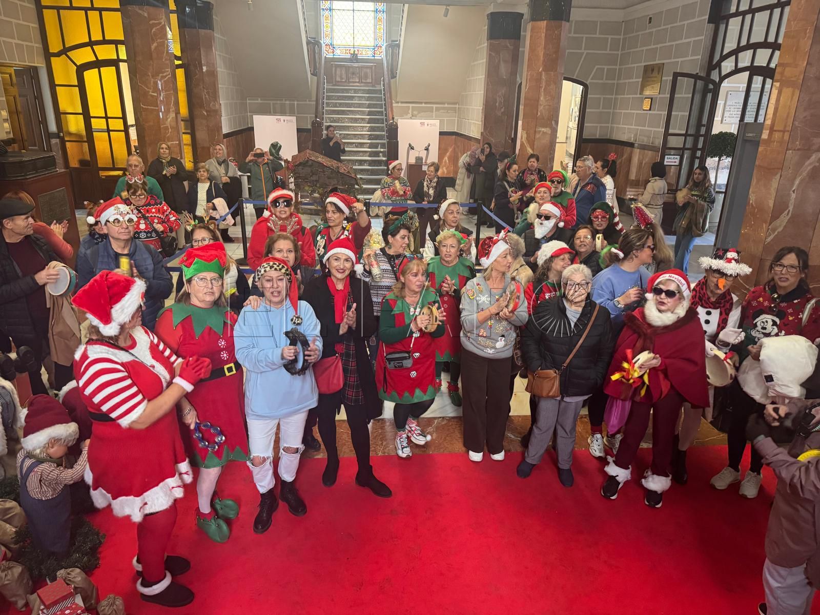 Ataviados muchos de ellos con ropa propia de estas fechas, han podido disfrutar del Nacimiento, que ocupa el espacio central, y la novedad de este año: un grupo de muñecos animados que se mueven al ritmo de la música y que se ha puesto junto a la escalera.