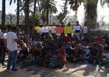 Un grupo volvió a concentrarse ayer en la Plaza de España para exigir su traslado a la península. Los inmigrantes ...