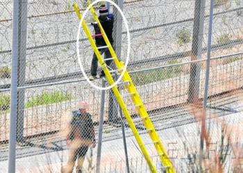 El jueves un subsahariano que quedó enganchado en la valla de Ceuta fue ayudado a bajar y luego llevado al ...