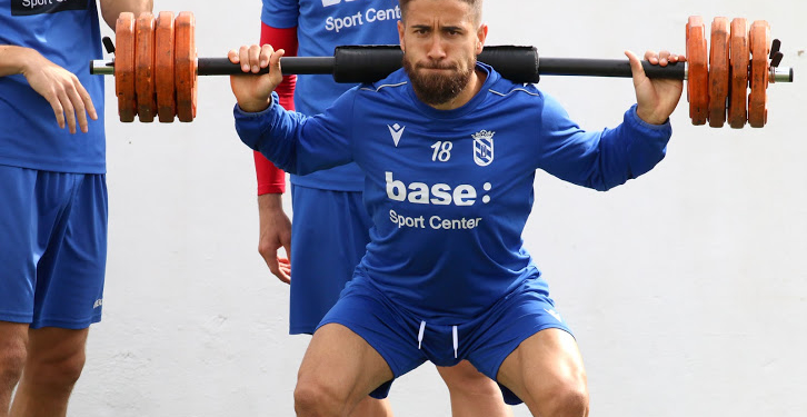 Una sesión, la de ayer, que estuvo dividida en dos partes. Una primera en la que la plantilla, dividida por grupos y por diferentes estaciones de trabajo, realizaba diferentes ejercicios de fuerza y velocidad por espacio de cuarenta minutos junto al preparador físico azulino Carlos Gómez.