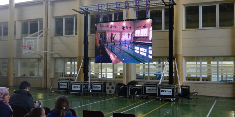 Ante la ausencia de una grada en la piscina del colegio, la Ciudad Autónoma de Melilla instaló una pantalla gigante en el patio cubierto del mismo y varias filas de asientos para que familiares de nadadores y público en general pudieran seguir la competición en directo, lo que sin duda aportó un gran colorido al tradicional evento.