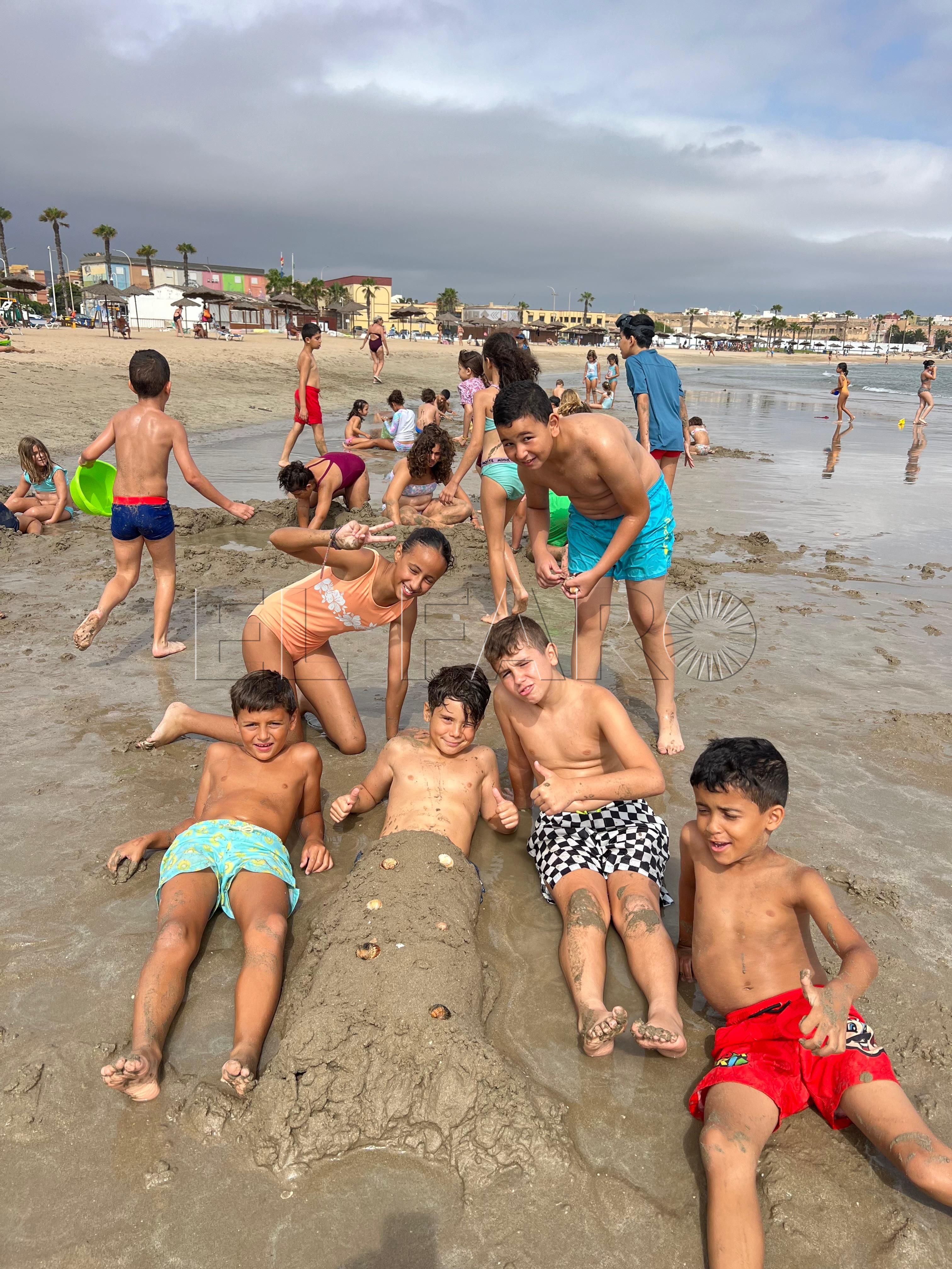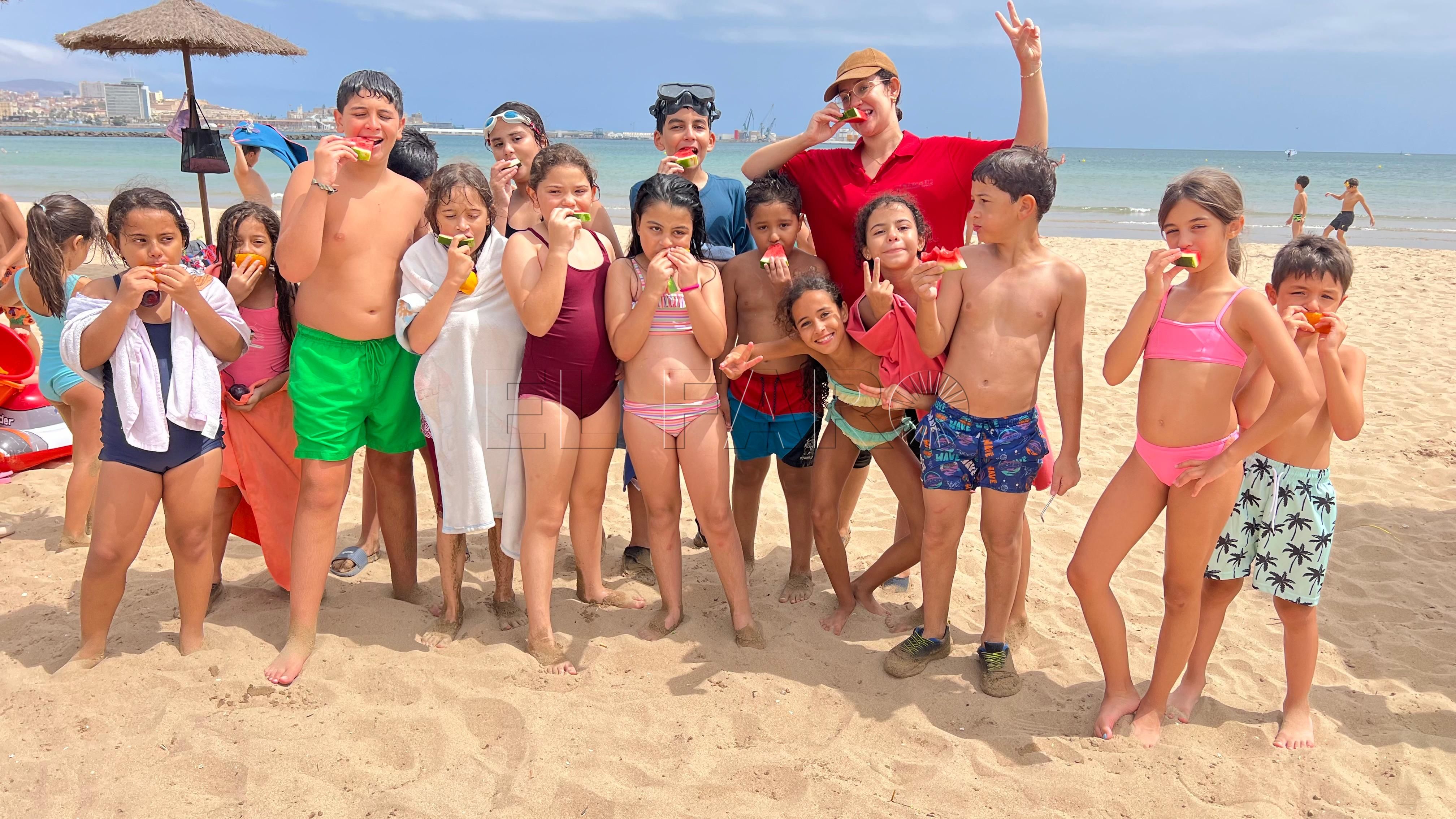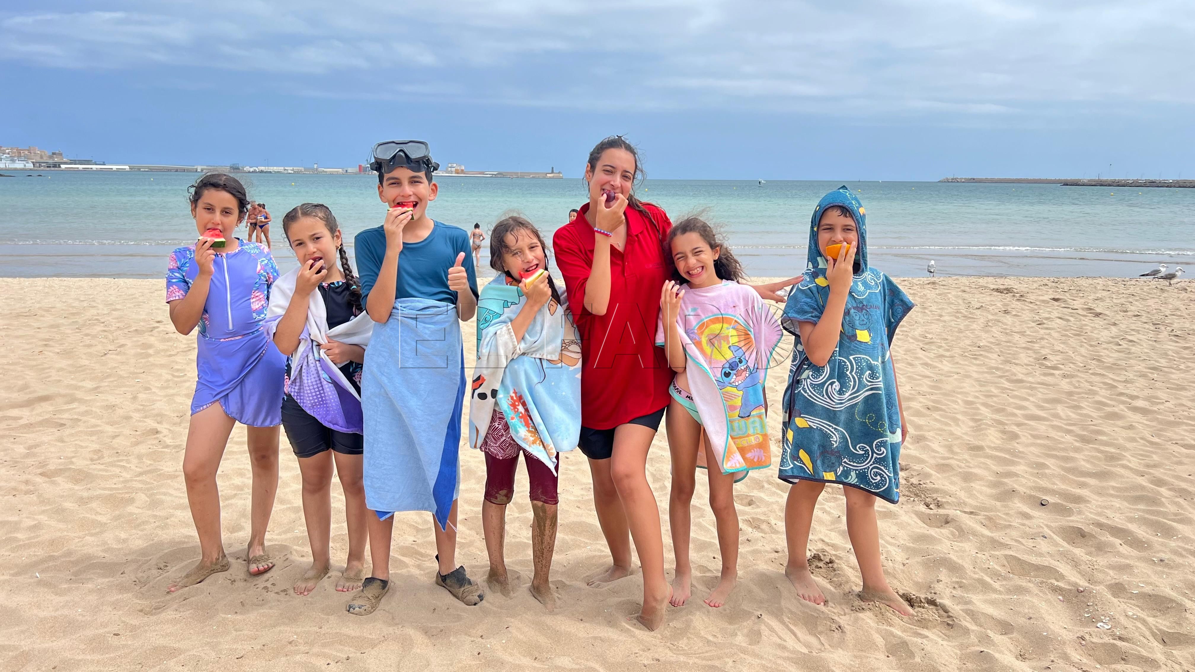 La temática “Arte x el Mundo” se tradujo en murales colectivos, collages y figuras de plastilina inspirados en monumentos y paisajes de distintos países. Cada jornada se iniciaba con la actividad “Cocinamos nuestro desayuno”, en la que los niños elaboraban postres saludables como helados de fruta natural y bolitas de coco, reforzando así hábitos nutricionales saludables. El calor se combatió con una gran fiesta del agua, que incluyó hinchables, piscina portátil y juegos con globos, mientras que la excursión a la playa sumó deporte, convivencia y vocabulario en inglés relacionado con el entorno marino.