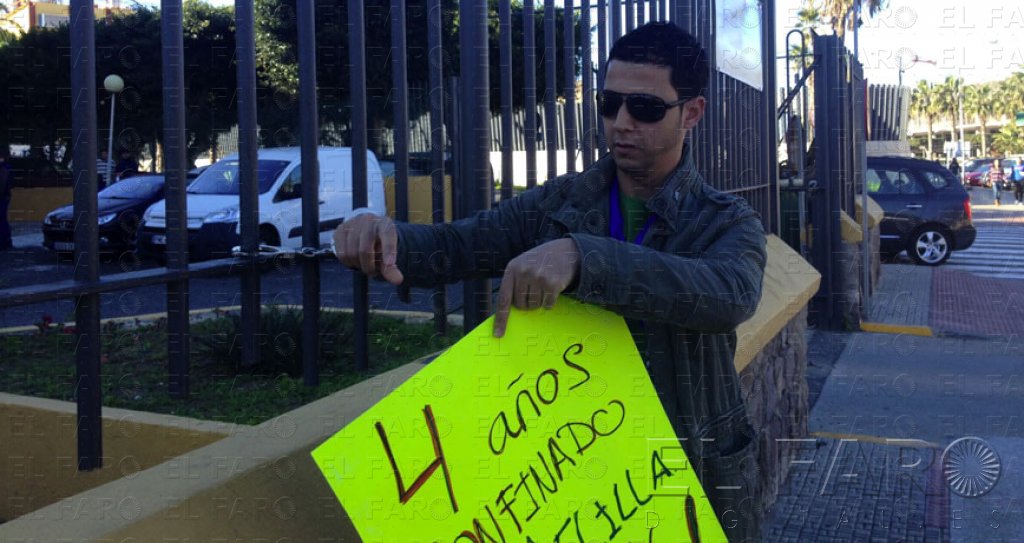 Hicham Bouchti, el marroquí asegura haber pertenecido a los servicios de inteligencia marroquíes y que inició en 2010 una huelga de hambre para que el Gobierno español le concediera un permiso de residencia, protagonizó en la jornada de ayer una rocambolesca escena en la Plaza de España. Tal y como anunció El Faro el lunes, la intención de Bouchti era iniciar un nuevo ayuno para conseguir un permiso de residencia. Hay que recordar que el afectado reside actualmente en Melilla con una cédula de inscripción, así como que está casado con una mujer de nacionalidad española y que tiene un hijo nacido en la ciudad autónoma.