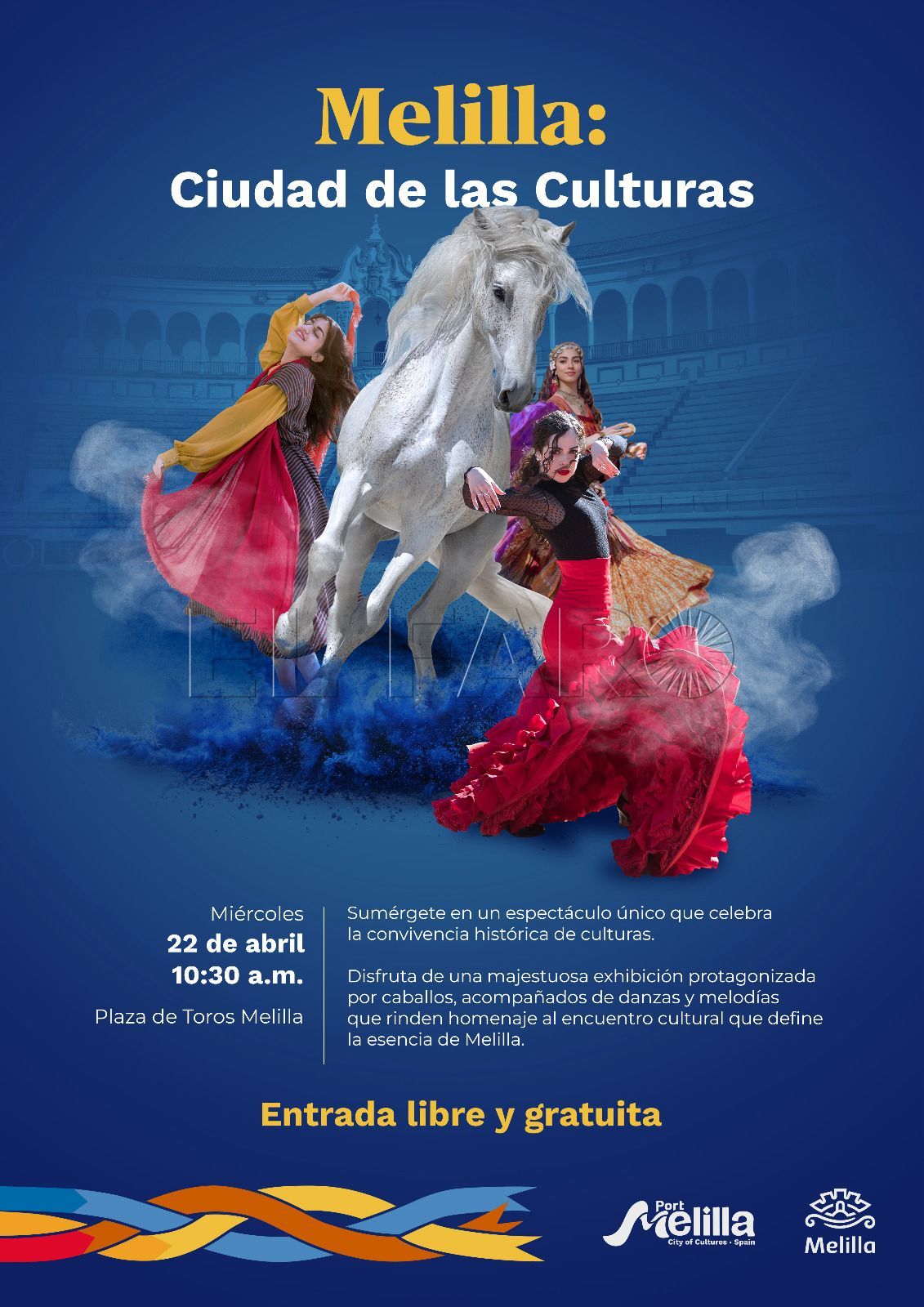 El espectáculo ‘Melilla: Ciudad de las Culturas’ combina danza, interpretación, identidad cultural y mundo ecuestre en una propuesta que pone en valor el talento local y abre nuevas vías para el ocio y el turismo en la ciudad