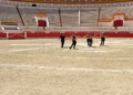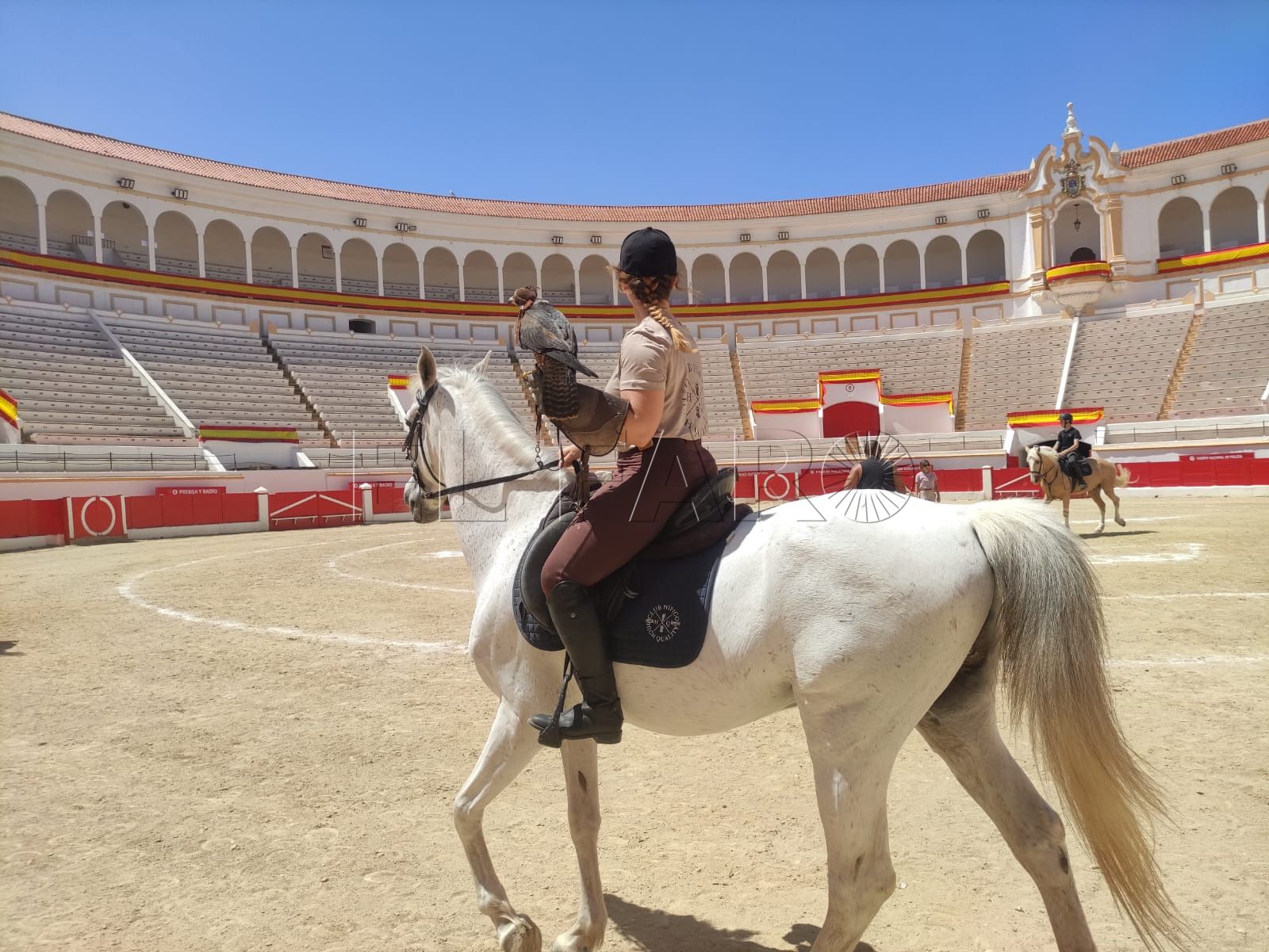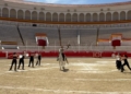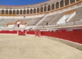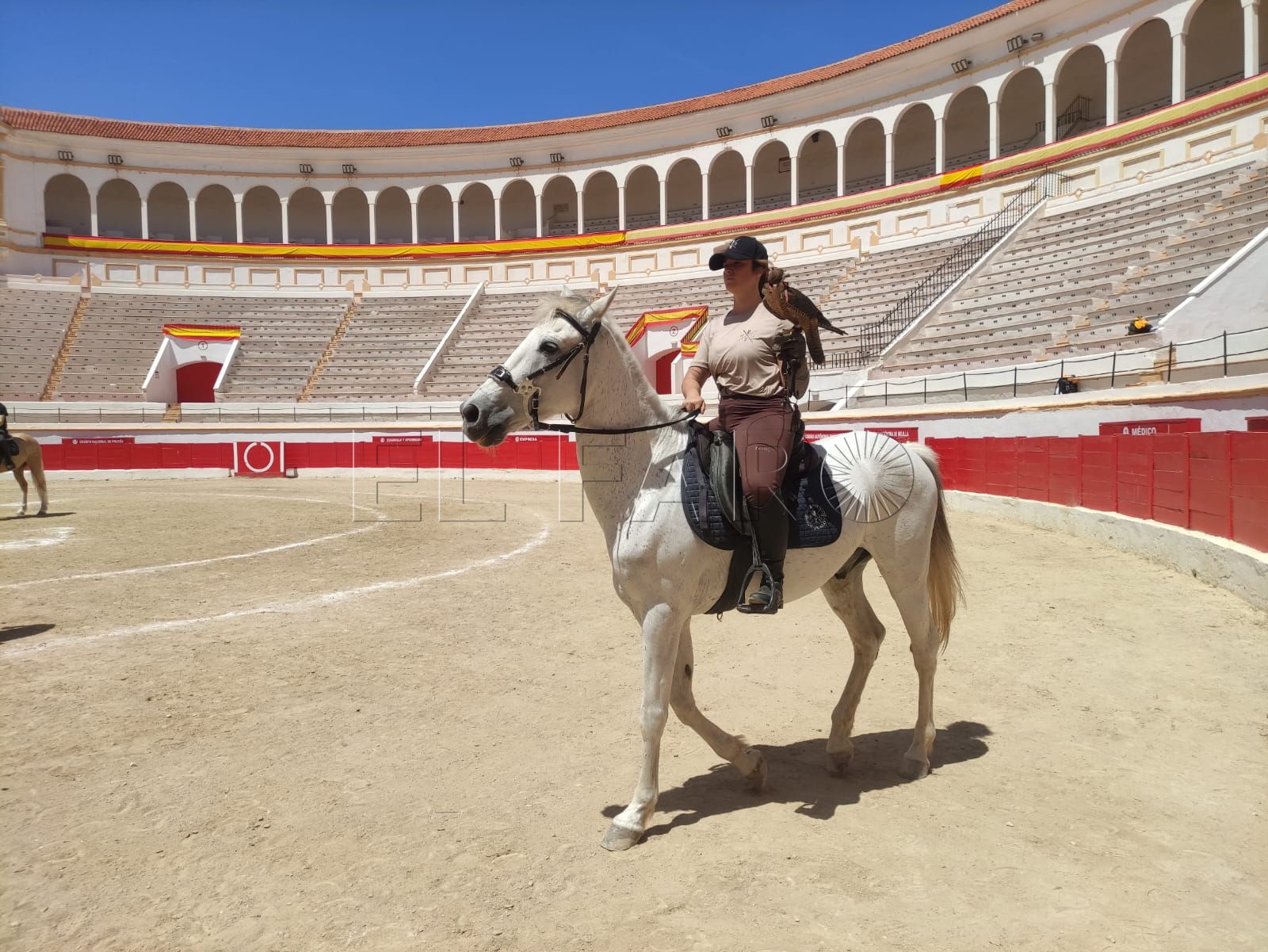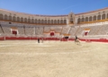 La plaza de toros se ha transformado este fin de semana en algo más que un punto de paso para los corredores de La Africana. El recinto, que aún conserva la inercia de la actividad reciente, ha mutado en un espacio de ensayo abierto donde lo que sucede no responde a una única lógica. Los tendidos permanecen vacíos, pero el lugar no está en silencio: la música emerge desde el centro del ruedo, las pezuñas marcan compases sobre la arena y, entre todo ello, se cuelan las miradas de quienes se acercan con curiosidad, intentando descifrar qué ocurre exactamente en ese cruce de disciplinas. Allí, sobre el albero, conviven dos mundos que rara vez se encuentran en la ciudad, generando una escena que rompe con lo habitual y anticipa algo distinto.