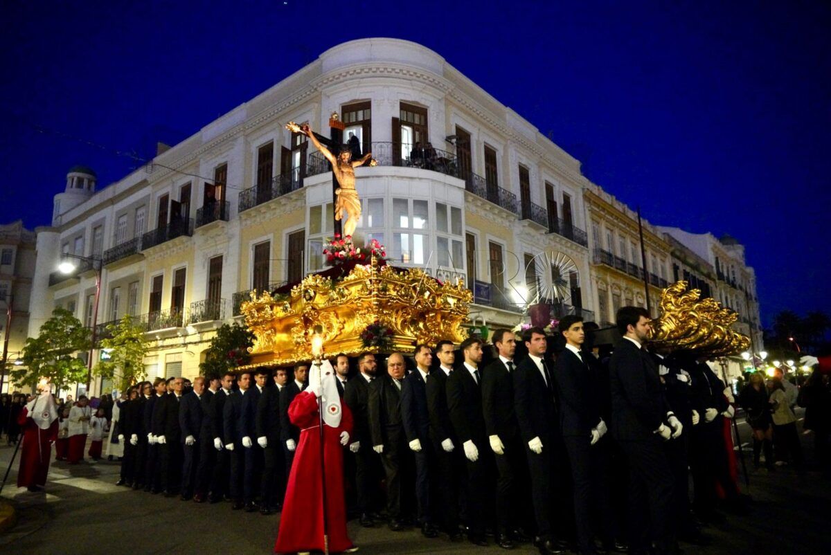 La procesión del Santísimo Cristo de la Paz de Melilla se celebró ayer, Jueves Santo, con salida desde la Parroquia del Sagrado Corazón de Jesús, situada en la plaza Menéndez Pelayo. La estación de penitencia más corta de la Semana de Pasión melillense comenzó a las 20:30 horas, con la apertura de puertas del templo y la incorporación progresiva del trono al exterior, donde ya aguardaban numerosos fieles y visitantes.