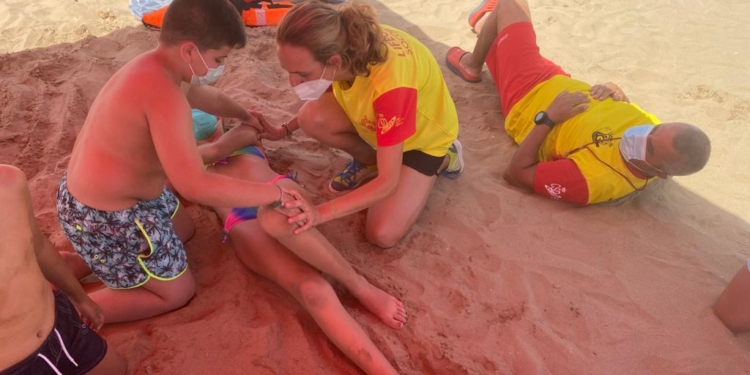 Posteriormente, los participantes pusieron rumbo a la playa de San Lorenzo, donde gracias a la colaboración del Club Rescue, perteneciente a la Federación Española de Salvamento y Socorrismo, los chicos y chicas pudieron recibieron nociones de primeros auxilios, con especial atención a las situaciones que ocurren en el mar.