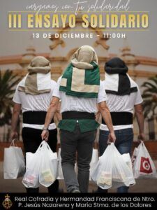 La Real Cofradía y Hermandad Franciscana de Nuestro Padre Jesús Nazareno y María Santísima de los Dolores celebra el próximo 13 de diciembre el III Ensayo Solidario, una iniciativa que conjuga tradición cofrade y compromiso social. Este evento, que se ha convertido en una cita esperada en la ciudad, parte de una práctica habitual en Andalucía, donde diversas hermandades aprovechan las fechas navideñas para salir a la calle con los pasos —sin imágenes— y realizar recorridos simbólicos mientras recogen alimentos para los más necesitados.