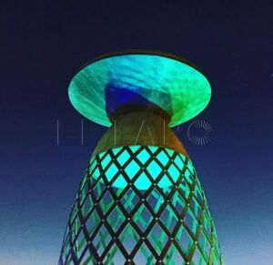 Sus creaciones reviven en espacios privados, pero Carlos Baeza ha permeado también en el diseño urbano con el que nos relacionamos directamente recorriendo las calles de la ciudad. El diseñador, artista y creativo —pues la especificidad de uno sobre otro carece de sentido— ha aportado al diseño de elementos ornamentales y ordenación urbanística en espacios como el Puerto Deportivo, la escultura de la denominada Piña en la rotonda de Cuatro Caminos —que en realidad “es una cúpula homenaje al modernismo”— o la Plaza de Méndez Pelayo. Esta última es “la más atractiva” para Baeza dentro del desarrollo de su trabajo en el ámbito urbano. Aunque sostiene que “la opinión pública está dividida”, refiriéndose a la ciudadanía local, la atracción visual para viajeros se reafirma al ser uno de los lugares más fotografiados de la ciudad, resalta Baeza.