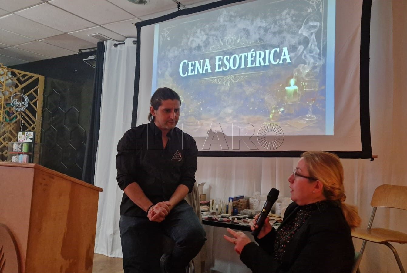 El evento de la Cena Esotérica fue conducido por “Meli” que después de hacer limpieza con su quemador se desplazó por las diferentes mesas para comentar con algunos comensales algunas características de su entorno espiritual. Después se dirigió a todo el público para disertar sobre el mundo de los Amarres y los Males de Ojos.