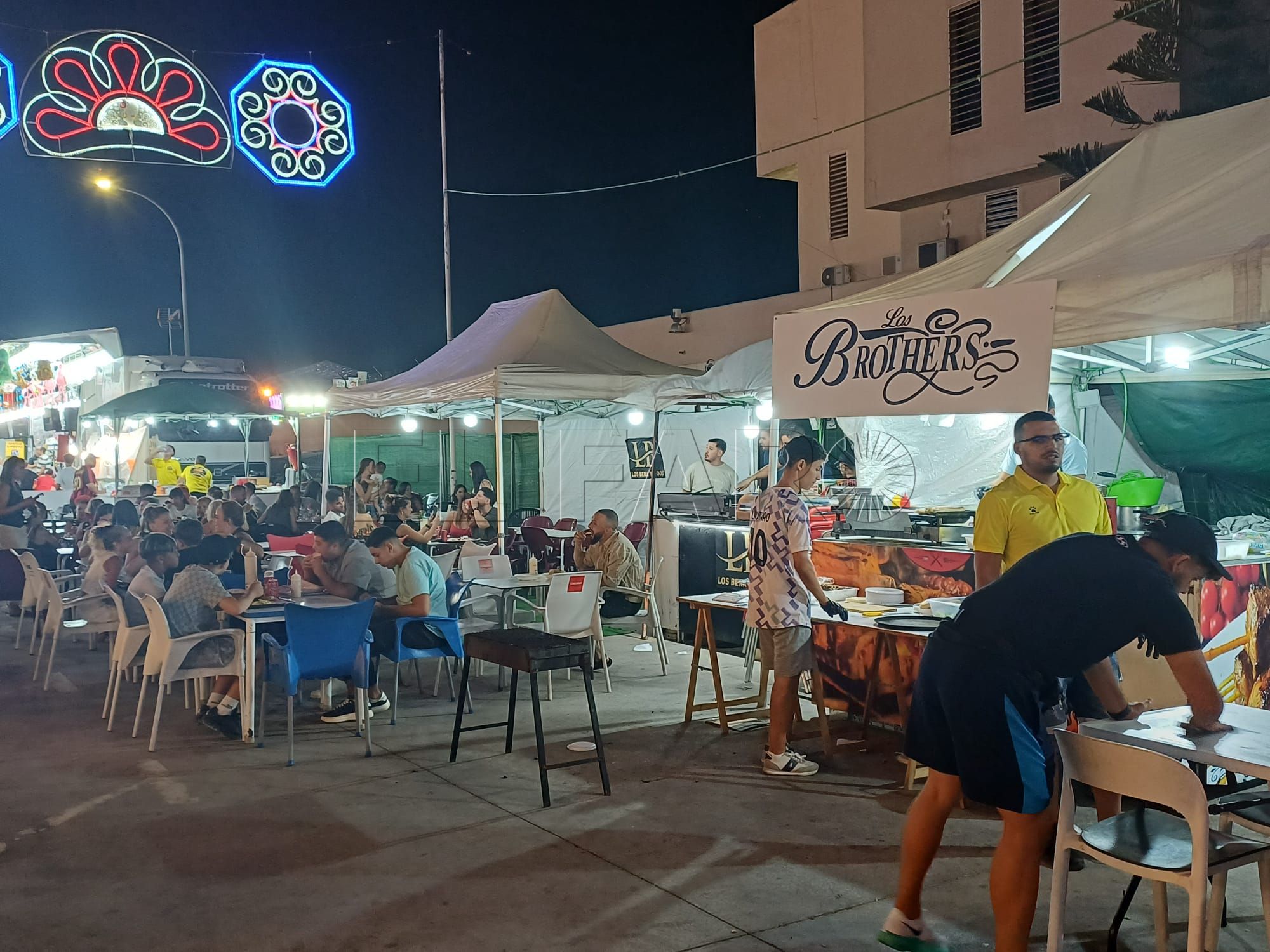 Esta zona se encuentra más alejada de las casetas tradicionales, menos concurrida que otras como la de los cacharritos, pero que reúne cada noche a centenares de melillenses deseosos de degustar deliciosos pollos asados, hamburguesas, pinchitos o shawarmas, entre otros ejemplos. Una deliciosa variedad de ejemplos gastronómicos que son sinónimo de este evento y que suponen algo necesario para coger fuerzas de cara a una larga noche de Feria.