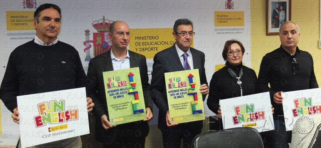 El director provincial de Educación, José Manuel Calzado, y Centros D2 presentaron ayer el programa ‘Fun English’, un proyecto con el que se ofrecen clases de apoyo de inglés a los niños de tres colegios de Melilla, como son Hipódromo, Reyes Católicos y Pedro de Estopiñán. Calzado indicó que estos centros solicitaron a la Dirección Provincial programas para potenciar el conocimiento de inglés de sus alumnos con el objeto de que en un futuro puedan convertirse en centros bilingües.