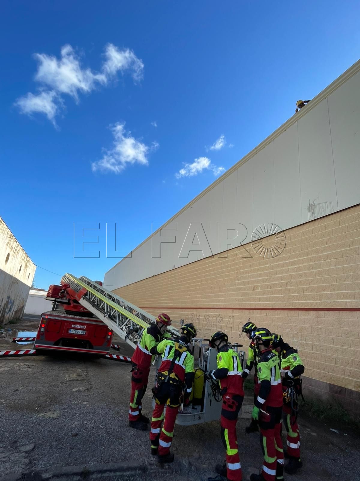 Cabe destacar la actuación en una nave del SEPES, debido al riesgo de desprendimiento de las planchas de acero de la cubierta. No en vano, una cayó llegó a caer en la vía pública.