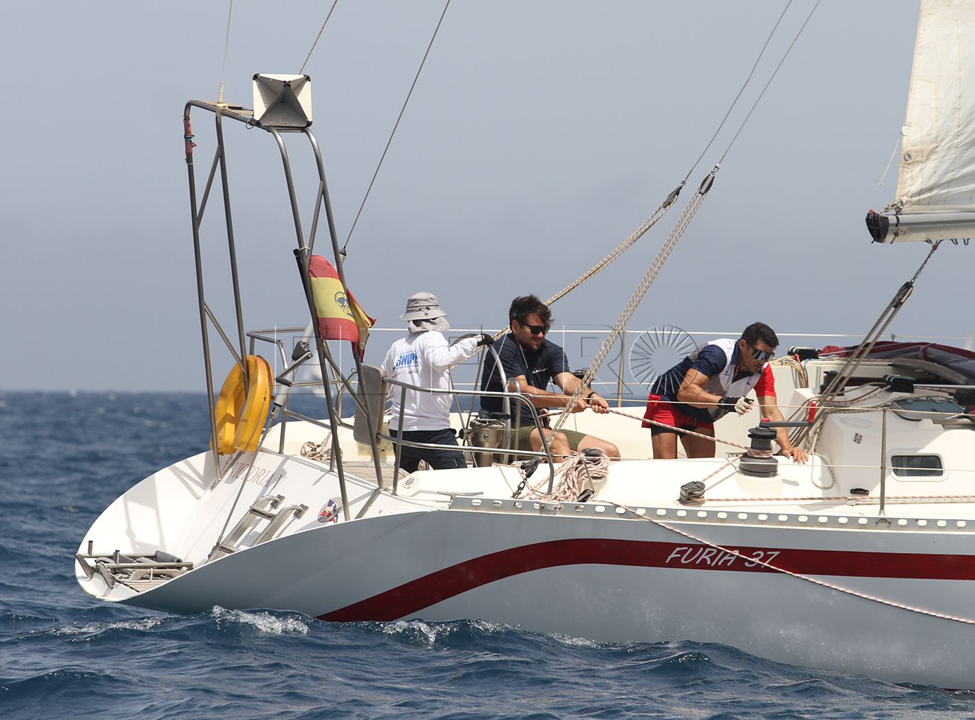 La tripulación liderada por Sergio Llorca, 'Ceuta - Dos Disparates' ha ganado esta regata, que se ha disputado en un recorrido de cinco tramos con una distancia total de cinco millas aproximadamente, con viento del 010º y una intensidad de trece nudos. La salida se ha dado puntual, a las 15:00 horas, una vez que la flota ya estaba en el campo de regata y el recorrido montado.