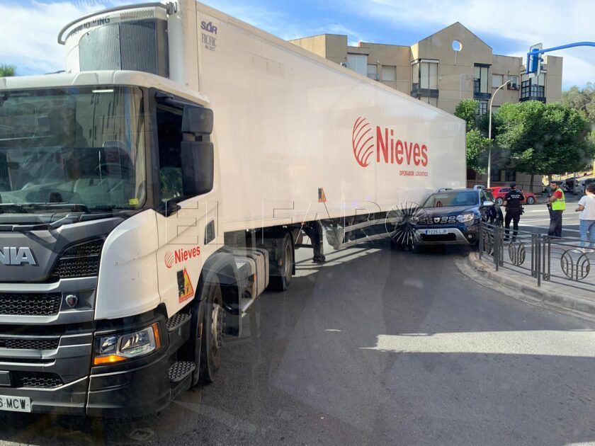 Un accidente de tráfico ocurrido a primera hora de la mañana de este martes ha generado cierta preocupación entre los vecinos de la zona de la Plaza de la Goleta. Un camión de la empresa Transporte Nieves ha colisionado con un vehículo todoterreno en una curva cercana a la calle Álvaro de Bazán.