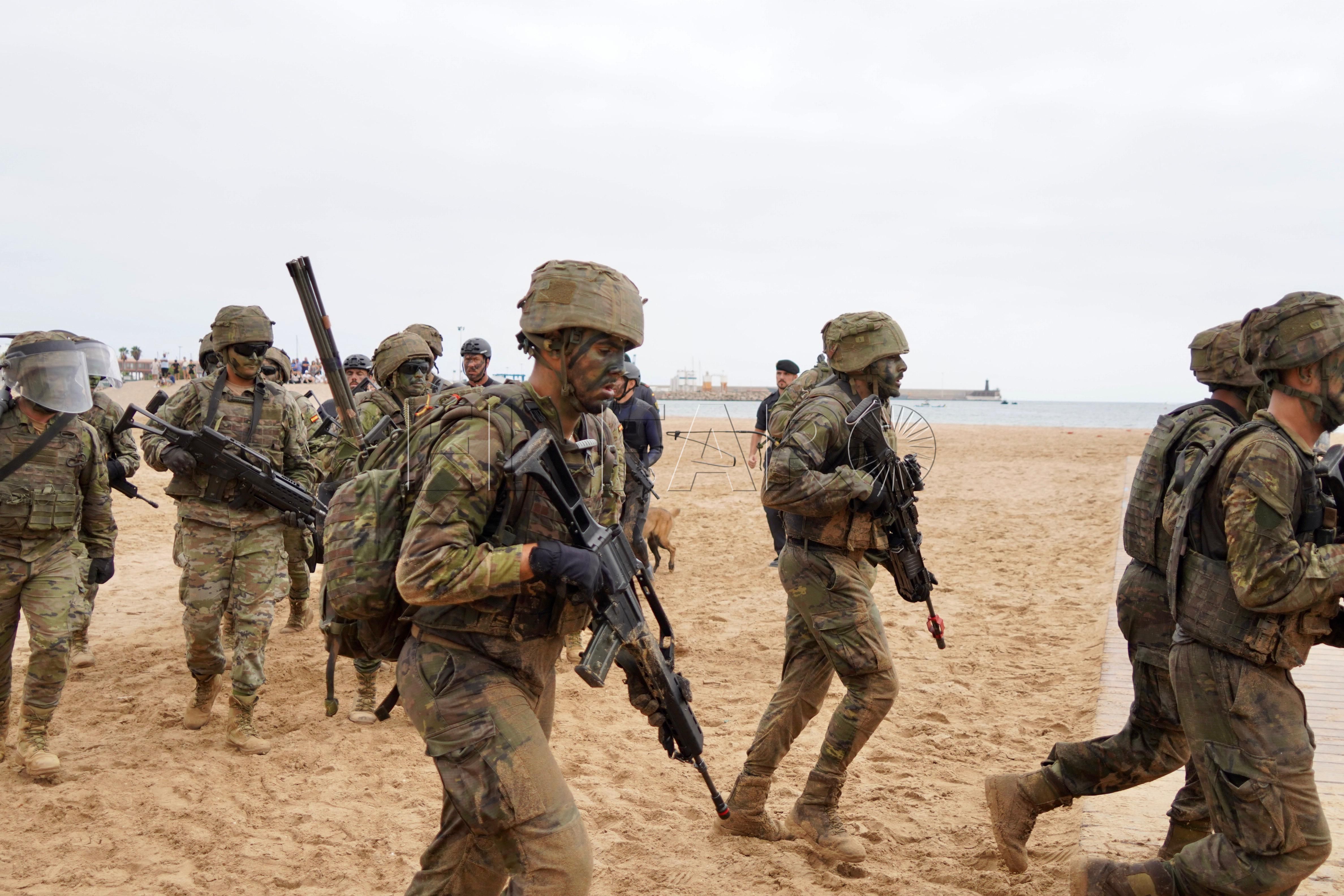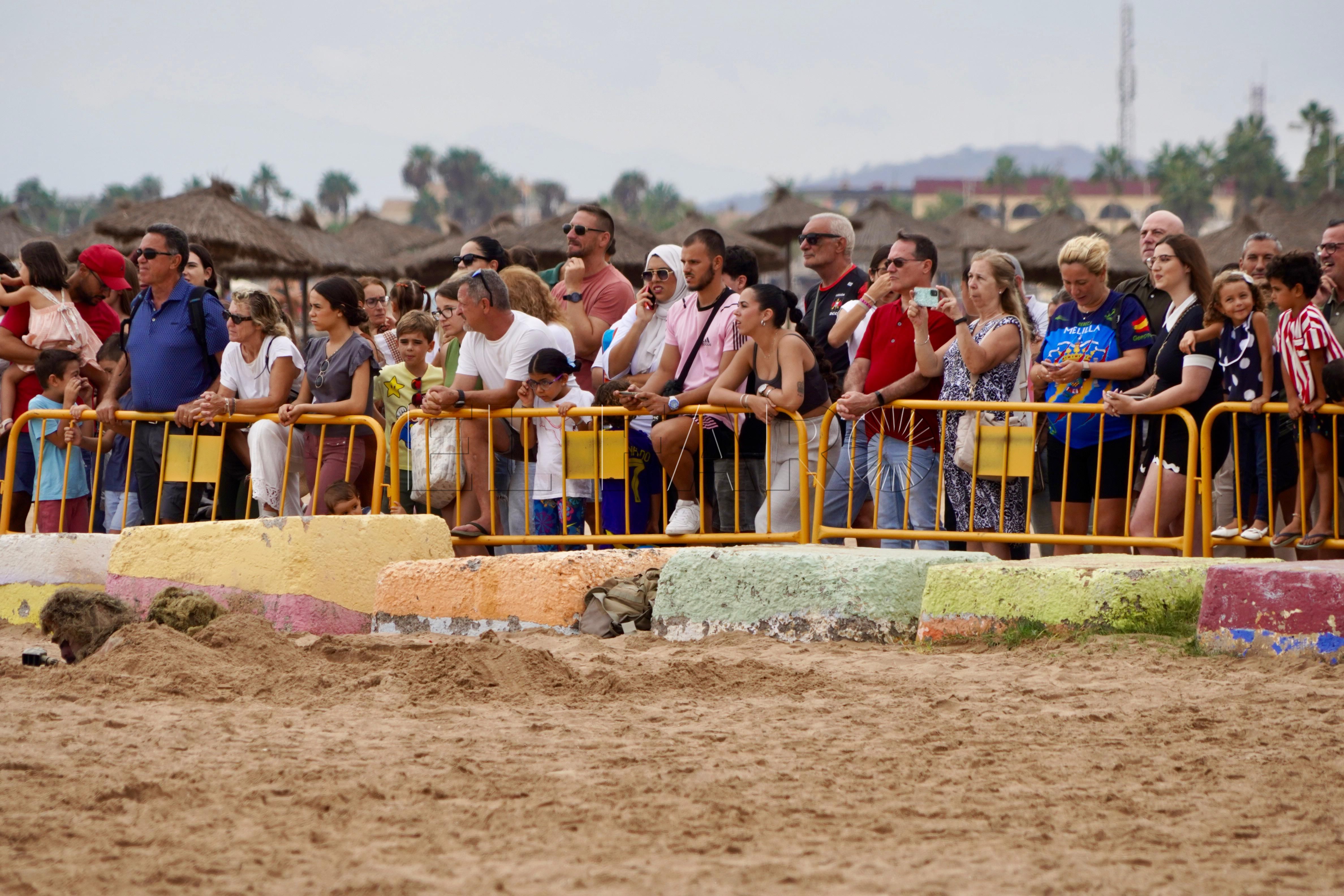 Cientos de melillenses se han acercado este miércoles hasta la playa de Los Cárabos para asistir a dos de las exhibiciones militares que se han organizado para celebrar el Día de Melilla, en el que se conmemoran los 528 años de la españolidad de la ciudad.