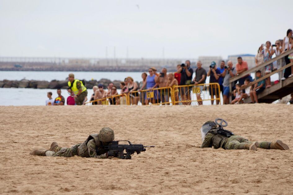 Cientos de melillenses se han acercado este miércoles hasta la playa de Los Cárabos para asistir a dos de las exhibiciones militares que se han organizado para celebrar el Día de Melilla, en el que se conmemoran los 528 años de la españolidad de la ciudad.