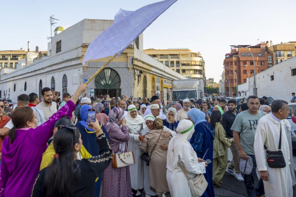 Los fieles comenzaron con un rezo en la mezquita para, posteriormente, dirigirse hacia el domicilio de Omar Duddu El Founti, figura clave de la comunidad musulmana de la ciudad en los años ochenta del siglo pasado, situada en la calle General Aizpuru, número 31. Allí tuvieron una breve recepción con dátiles y leche antes de partir.
