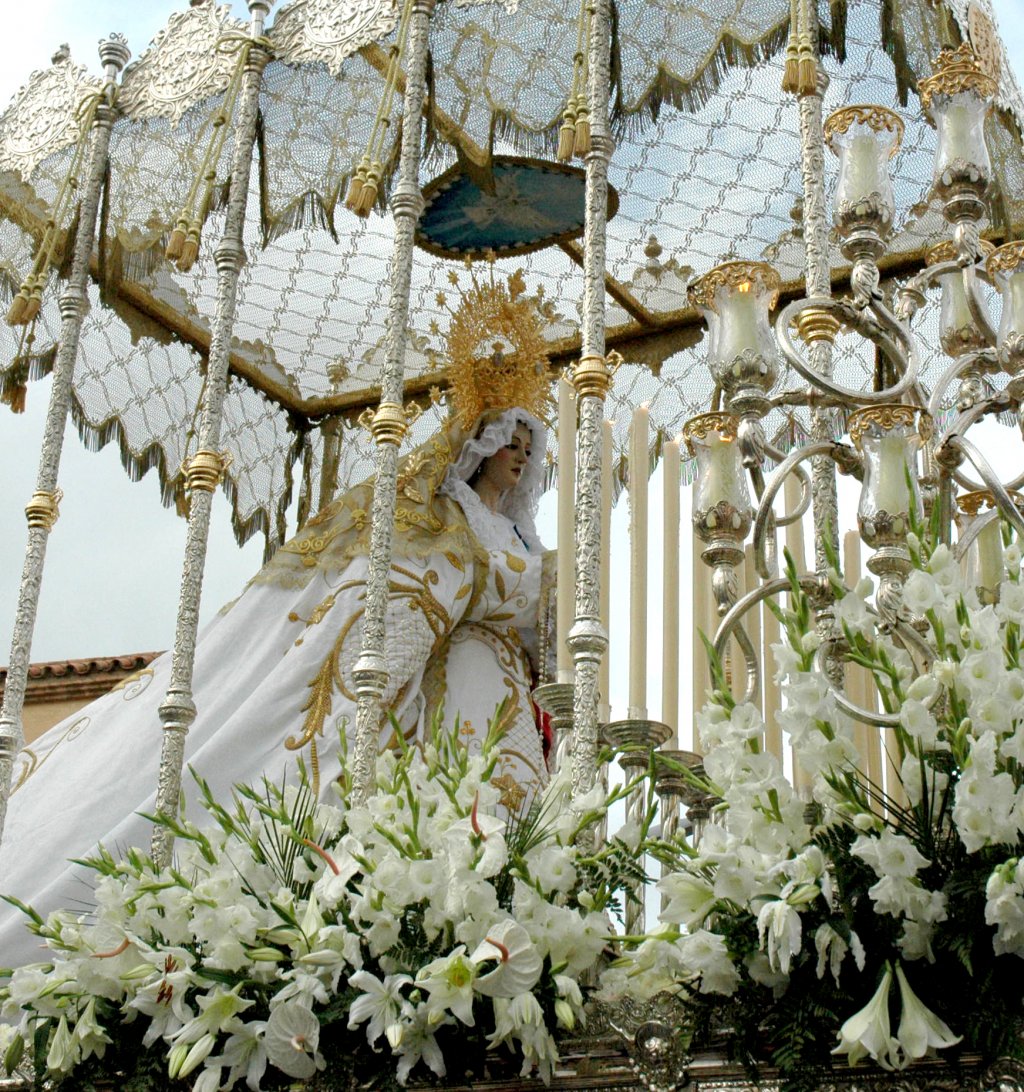 Además, la Virgen estrenará una saya de encaje de bolillo, bordada además con perlas y flores de seda que ha sido regalada a la Cofradía por el propio Juan Campos Cruz.