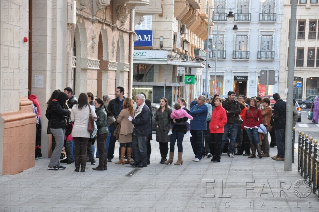 Los melillenses hicieron ayer cola en la puerta del Teatro Kursaal para comprar las entradas de la obra que se representará los días 27, 28 y 29 de enero.