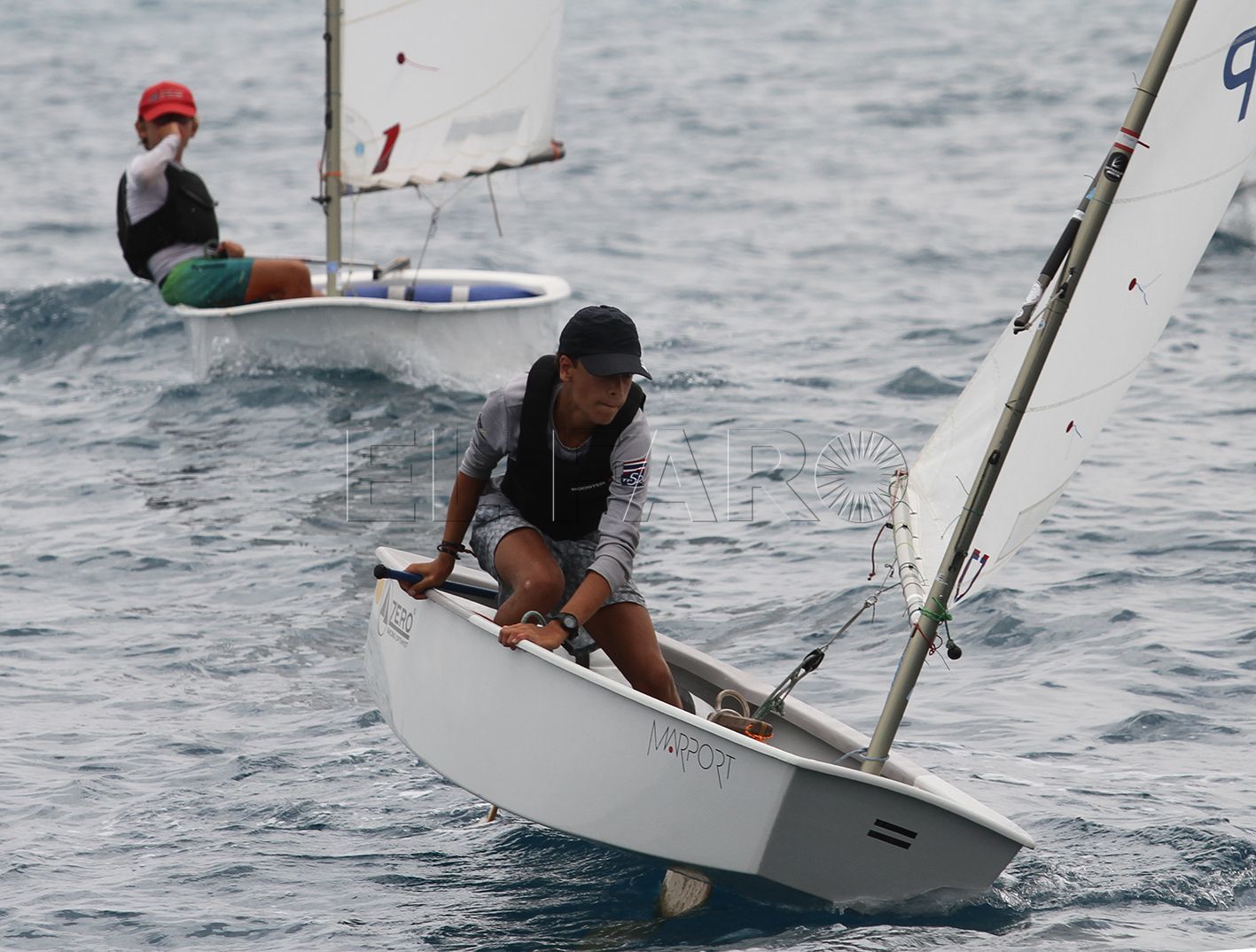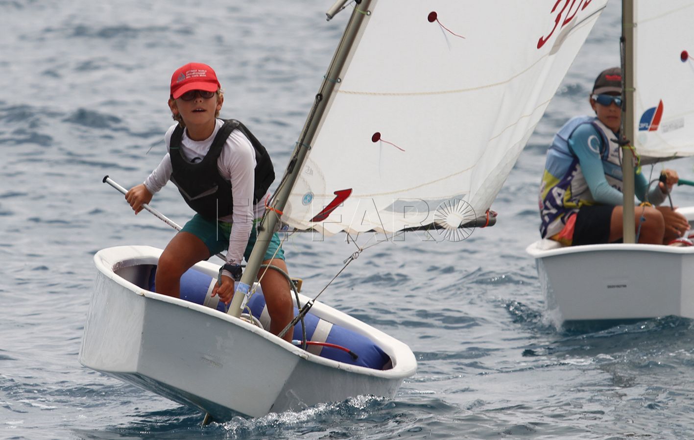 Tras dos intentos fallidos, ya con bandera negra izada en Comité, se conseguía dar la salida a los optimist a las 14:20 horas con rumbo al 075º, para después tenerse que anular la segunda prueba del día cuando se había reposicionado al 090º, para finalmente poder completar la segunda manda con un recorrido acortado. Todo ello, con vientos oscilando entre cuatro y siete nudos.