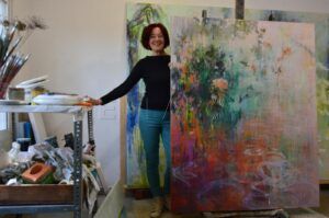 Esa manera de construir por capas conecta también con su propio recorrido como creadora. Pink recuerda una etapa anterior, en los años 90, en la que su trabajo se volvió muy abstracto: monocromático, minimalista, al límite de la reducción. Con el tiempo —explica— sintió la necesidad de regresar a algún tipo de figuración, de recuperar una referencia reconocible que le permitiera “volver” a lo humano y a lo simbólico sin renunciar a la libertad del gesto. Esa transición no significó abandonar lo abstracto, sino incorporarlo de otra forma: como base, como atmósfera, como energía subyacente que sostiene lo que se sugiere.