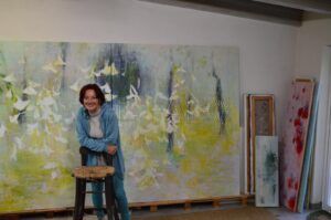 Ese contacto humano, sostiene, influye en su obra. No porque convierta esas historias en retratos ni porque pinte escenas concretas, sino porque de ahí extrae una inspiración que se transforma en lenguaje pictórico. Acompañar a esas mujeres, escuchar y sostener, observar cómo una imagen puede contener mucho más de lo que parece, refuerza su forma de pintar: trabajar por capas, sugerir sin invadir, dejar que lo importante emerja sin imponerlo. En ese sentido, su pintura y su terapia comparten una idea de fondo: hay cosas que necesitan tiempo para revelarse, y hay una forma de espiritualidad —entendida como equilibrio y cuidado— que consiste en respetar ese ritmo.