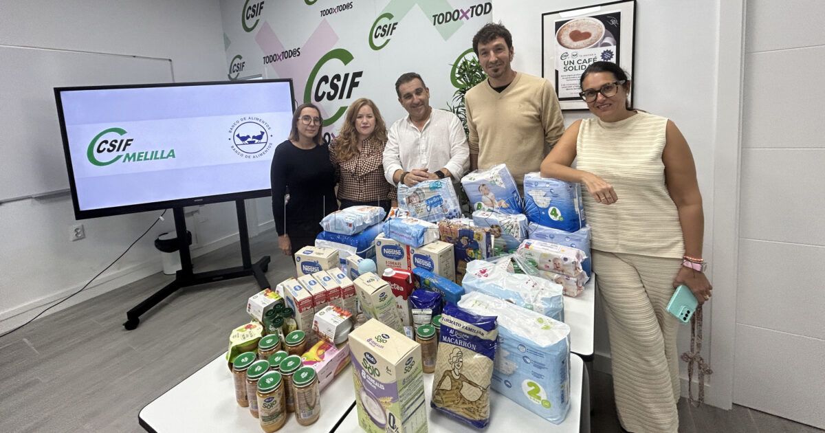 El sindicato CSIF Melilla organizó este miércoles por la tarde una iniciativa solidaria bajo el título “Un café solidario”, con la que buscó contribuir activamente a la Gran Recogida de alimentos que llevará a cabo el Banco de Alimentos de Melilla los días 7 y 8 de noviembre. El evento se celebró en la sede de la organización sindical, situada en la calle Méndez Núñez, y congregó a decenas de delegados, afiliados y simpatizantes que acudieron para donar productos de primera necesidad, especialmente aquellos destinados a la infancia, como potitos, pañales o cereales.