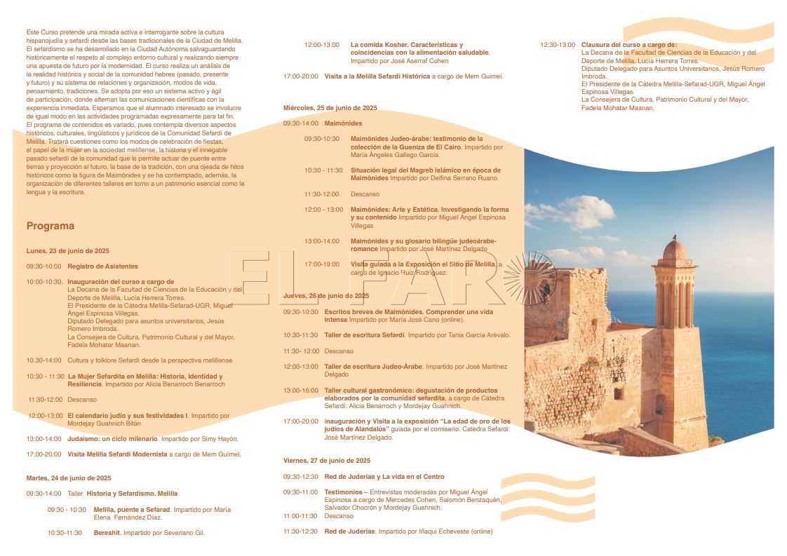 Con 30 horas lectivas distribuidas en cinco días y 45 plazas disponibles, el programa abarca desde aspectos históricos y lingüísticos hasta elementos gastronómicos y jurídicos de la comunidad sefardí melillense.