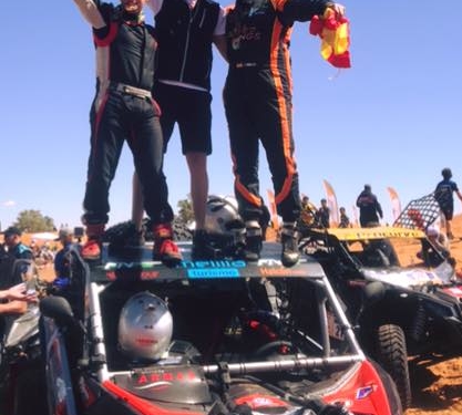 Recordamos que la escudería melillense está corriendo con un vehículo de serie en categoría Stock frente a los de categoría Dakar que lo hacen con vehículos más preparados y con modificaciones mecánicas. Ayer se colocaban primeros en la categoría Road To Dakar, en la que la organización te premia con una inscripción gratuita al Dakar. El colofón final llegó en la quinta etapa de esta rally donde los melillenses hicieron una competición para enmarcar puesto que supieron aguantar las embestidas de todos sus rivales, sin arriegar mucho para entrar en la cuarta posición de la etpa lo que le hace terminar 3 de la general, segundos en la categoría stock y primeros en Road to Dakar.