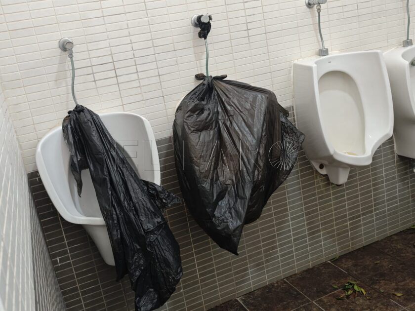 Uno de los aspectos más preocupantes señalados por la formación es la situación de los aseos públicos. De los dos baños existentes en el parque, uno permanece completamente cerrado, lo que obliga a concentrar a todos los usuarios en el único que se encuentra operativo. Este presenta, según la denuncia, importantes deficiencias de higiene y mantenimiento, con urinarios clausurados de forma provisional con bolsas de basura, suelos sucios cubiertos de hojas y paredes con pintadas vandálicas.