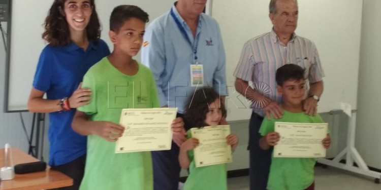 El consejero de Educación, Juventud y Deportes, Antonio Miranda, ha asistido en el campo de fútbol de La Espiguera a la clausura de este campamento, en el que ha tenido lugar la entrega de diplomas a los niños.