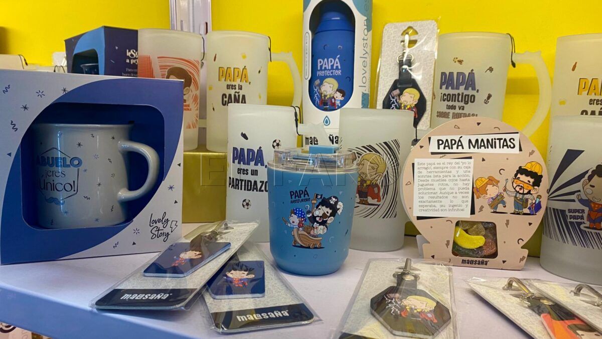 Monva Regalos, un establecimiento situado en la calle General O'Donnell, presume en su escaparate de artículos originales y muy apropiados para este día. Tazas, vasos, gominolas o llaveros con mensajes dedicados específicamente a los papás. Trabajan especialmente esta campaña y ofrecen la opción de personalizar los productos. “Este año lo que hemos tenido como novedad son las jarras de cerveza, que vienen ya con frases. Por ejemplo, una pone «mi papá es la caña»”, manifestaba su propietario Javier Montesinos.