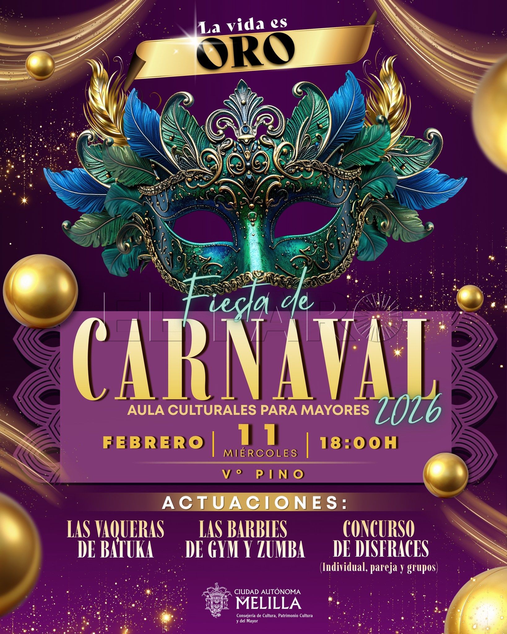 Por su parte, las Aulas Culturales para Mayores organizarán su Fiesta de Carnaval el miércoles 11 de febrero, a las 18:00 horas, en el Vº Pino, con actuaciones y concurso de disfraces, completando una programación que abarca distintos colectivos y puntos de la ciudad.