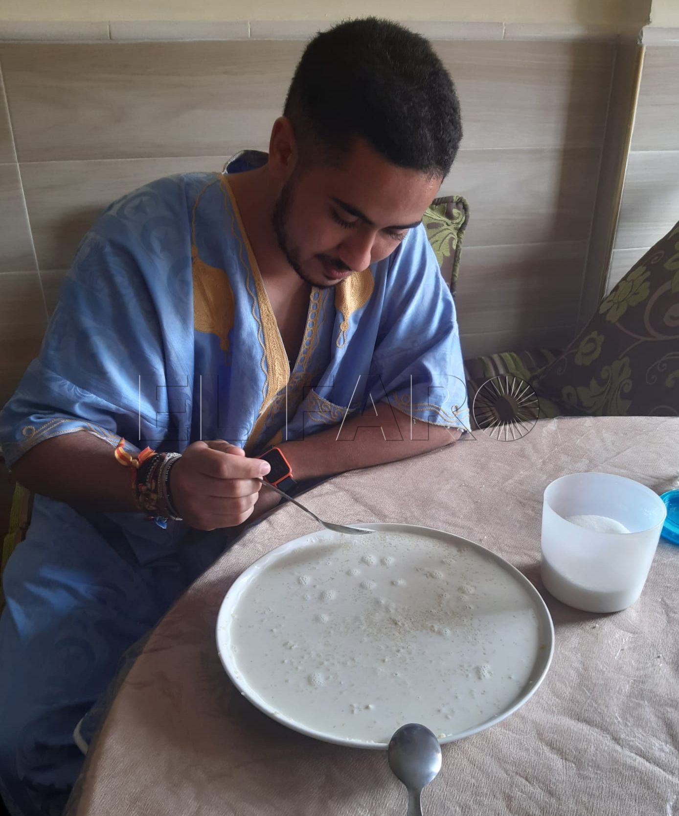 “Hoy es un día que se celebra el fin del Ramadán con un desayuno en familia, con un poco de todo, pero lo que nunca falta, es el té y un tipo de churros que vosotros conocéis como buñuelos, además de, bizcochos, pastas ofrutos secos”, relató Ahmed, quien detalló a El Faro cómo suele celerarse el final del Ramadán.