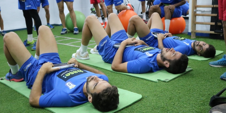 Los de Luis Miguel Carrión se ejercitaron en el gimnasio del estadio y el césped de La Espiguera